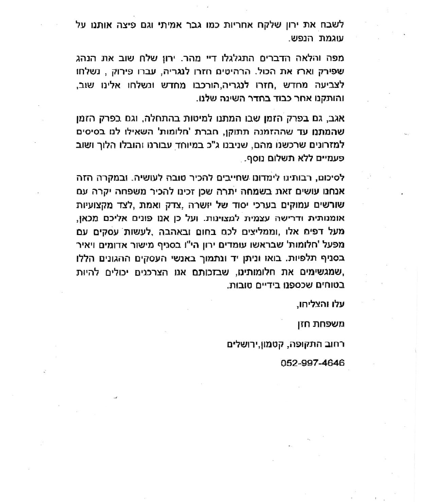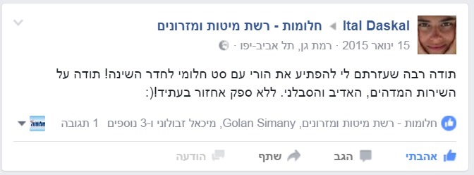 תודה רבה צות חלומות! עכשיו ללא ספק יש חלומות טובים 🙂