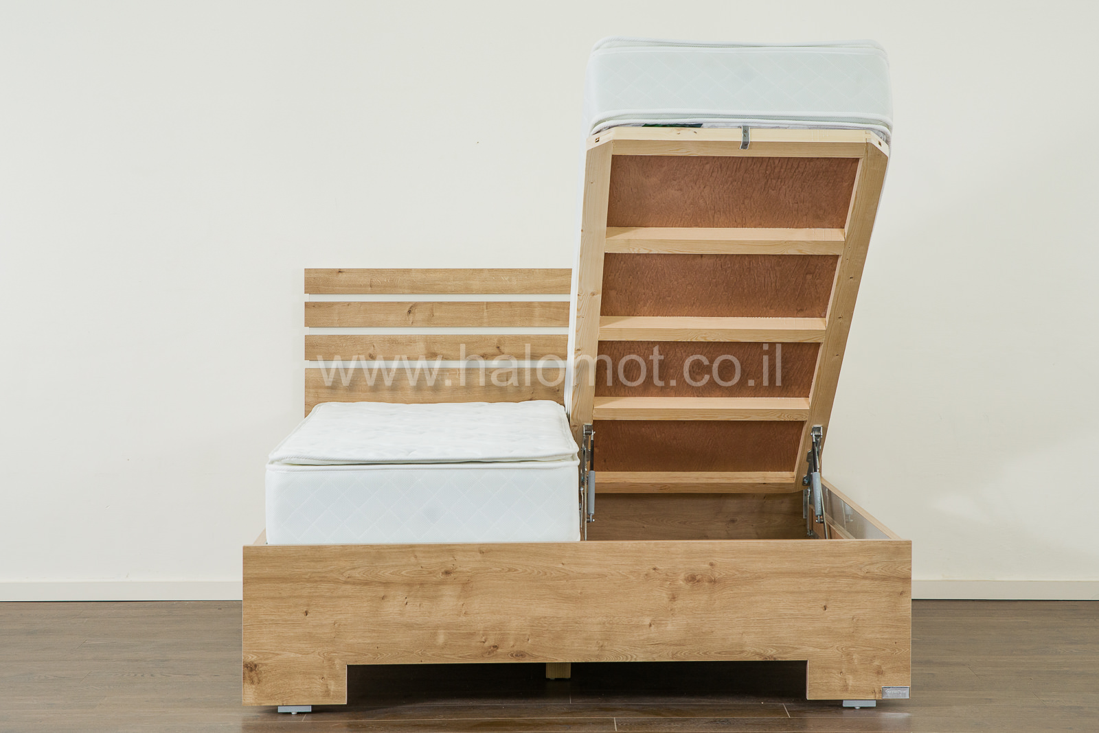- ארגז המצעים מוגבה ע”י תמיכה לרצפת הארגז ומאפשר מרווח כניסה של 12.5 ס”מ מתחת למיטה- מותאם במיוחד לניקיון ע”י מגב שטיפה ו/או מכשירי איי-רובוט.