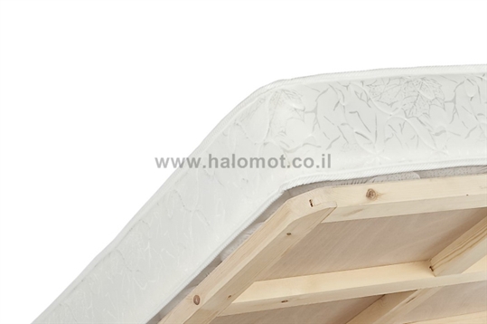 בסיס המיטה עשוי קורות עץ אורן מלא ועליהן תמיכה אחידה של דיקט.