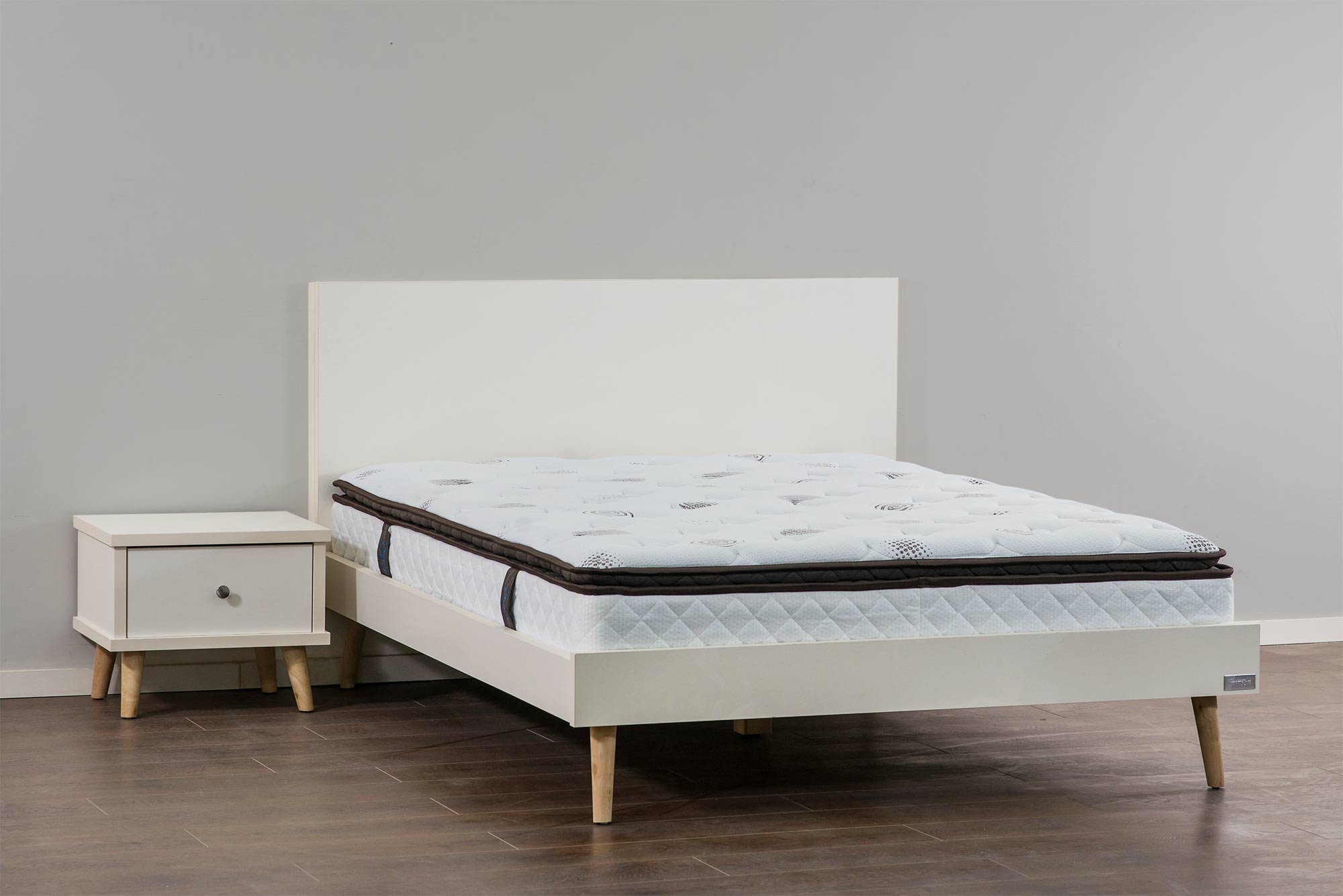 מסגרת המיטה בנויה ממלמין בעובי 28 מ”מ, רגליים עץ מלא.