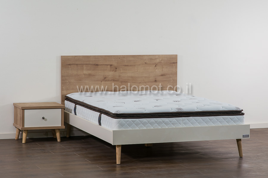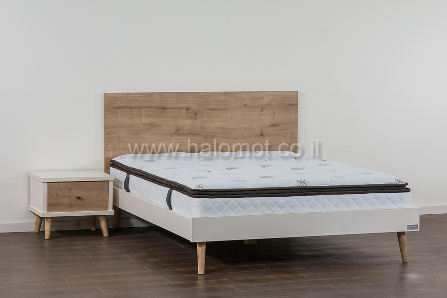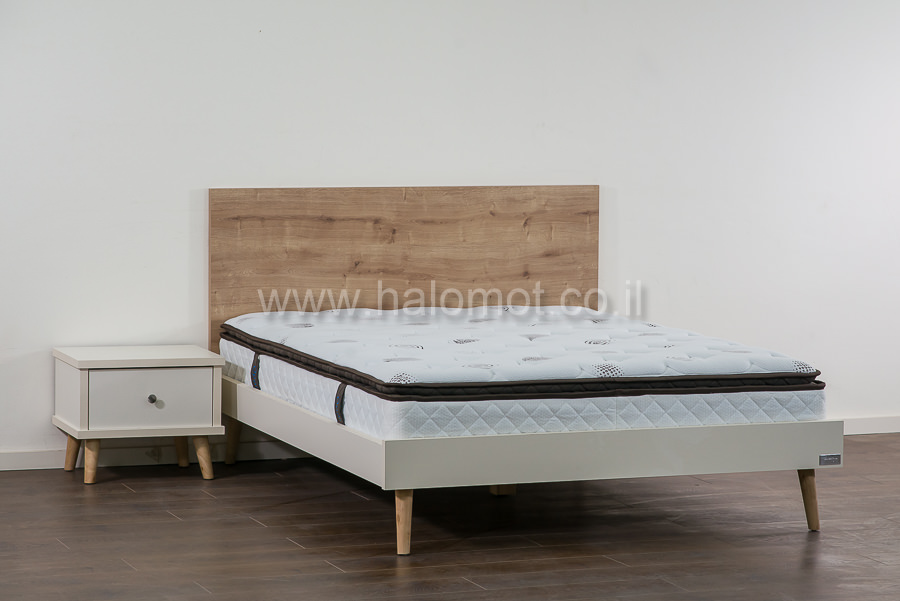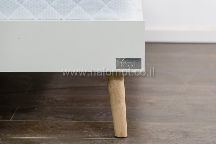 מסגרת המיטה בנויה ממלמין בעובי 28 מ”מ, רגליים עץ מלא.