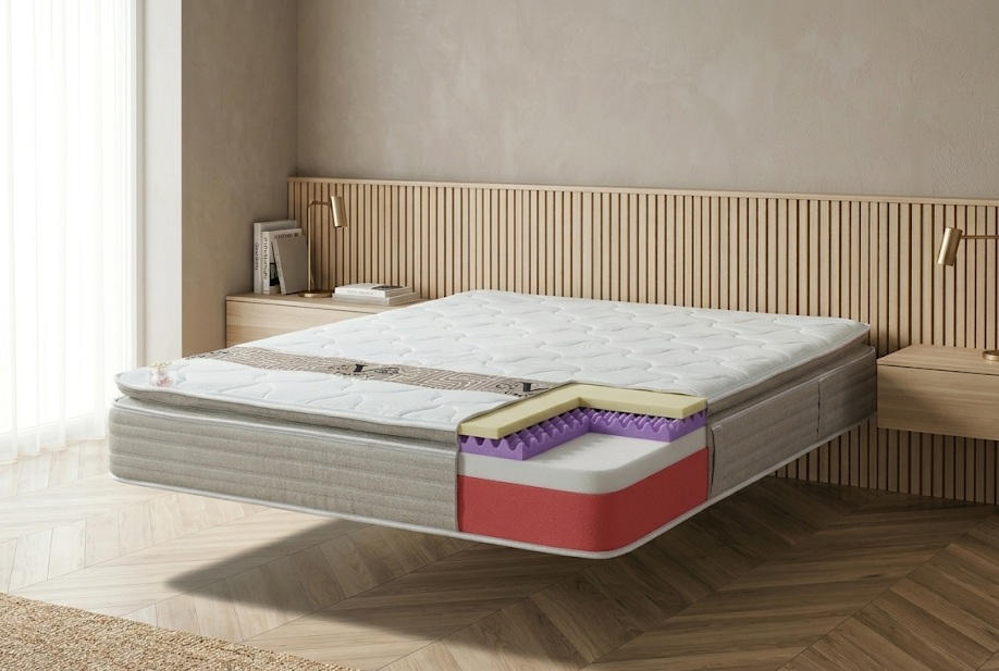 מזרן ללא קפיצים – השכבות התחתונות של המזרן בנויות משכבות ספוג קשיחות לתמיכה מושלמת.