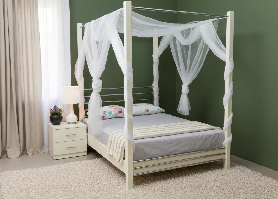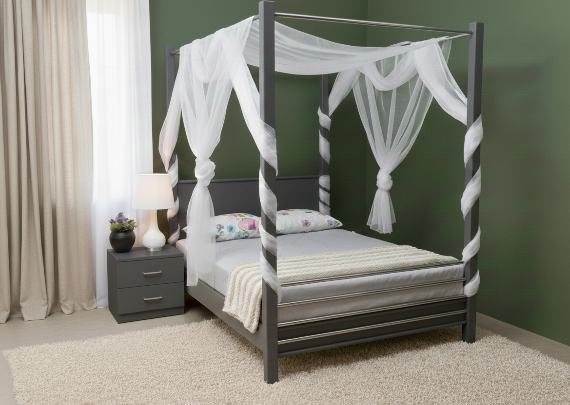 מיטה אפיריון – מיטה זוגית עם מוטות מעץ אורן מלא ומוטות ניקל