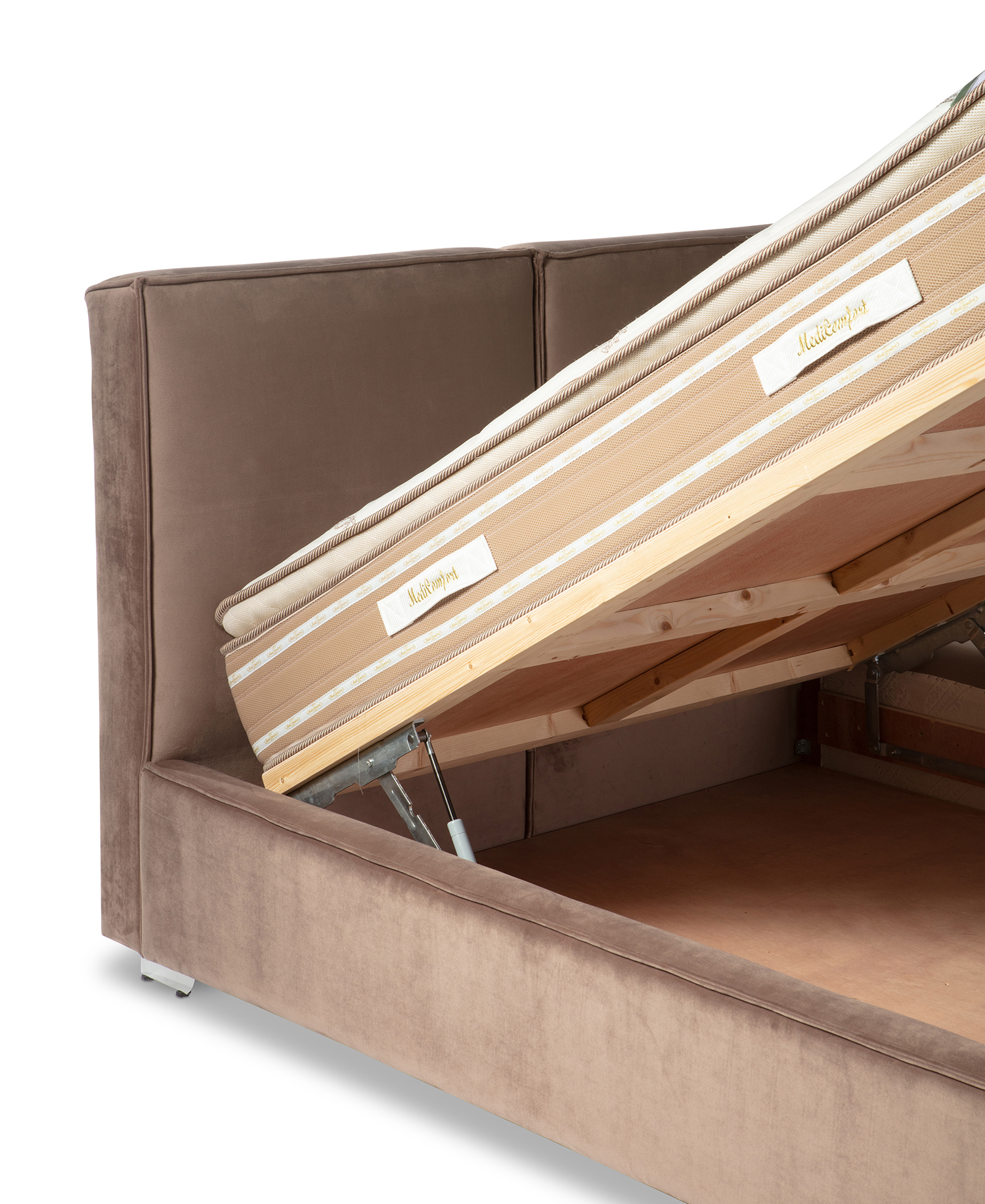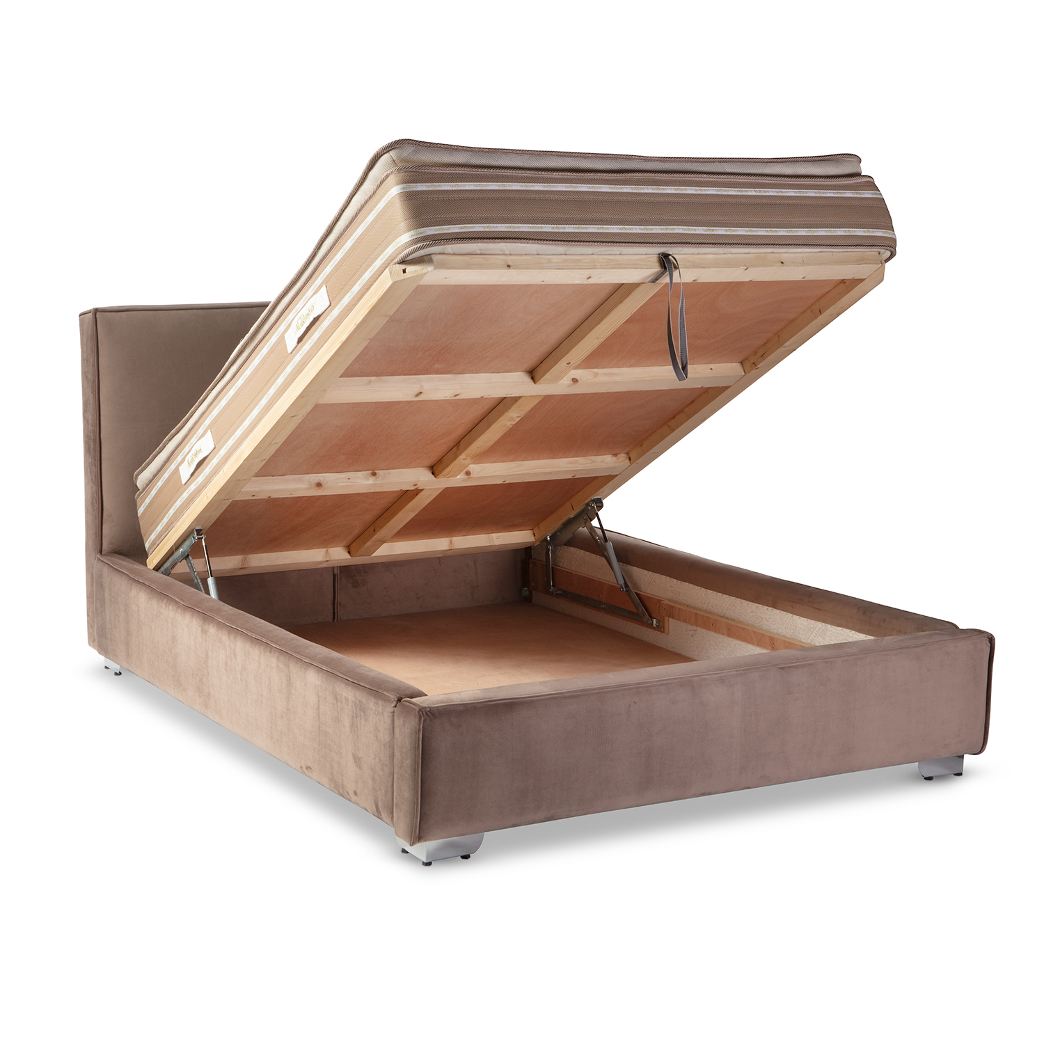 גוף המיטה בנוי מסנדוויץ ומרופד בבד או דמוי עור במגוון צבעים וטקסטורות.
