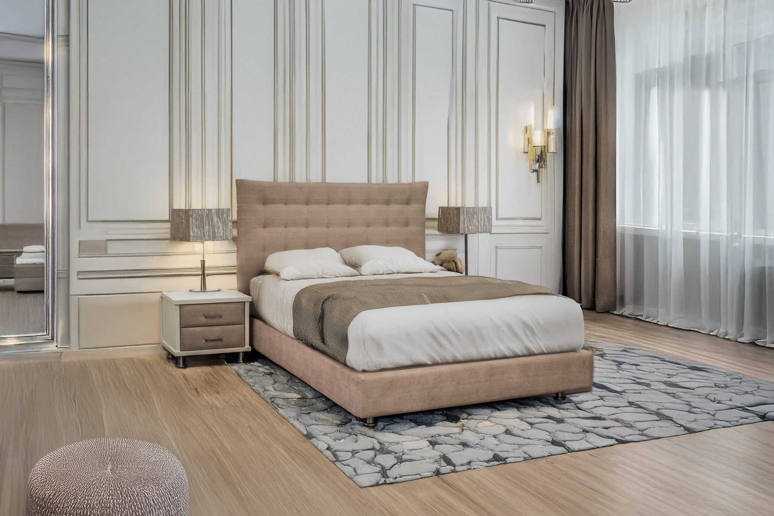 מיטה יהודית דגם גל - ראש מרופד וזוג שידות