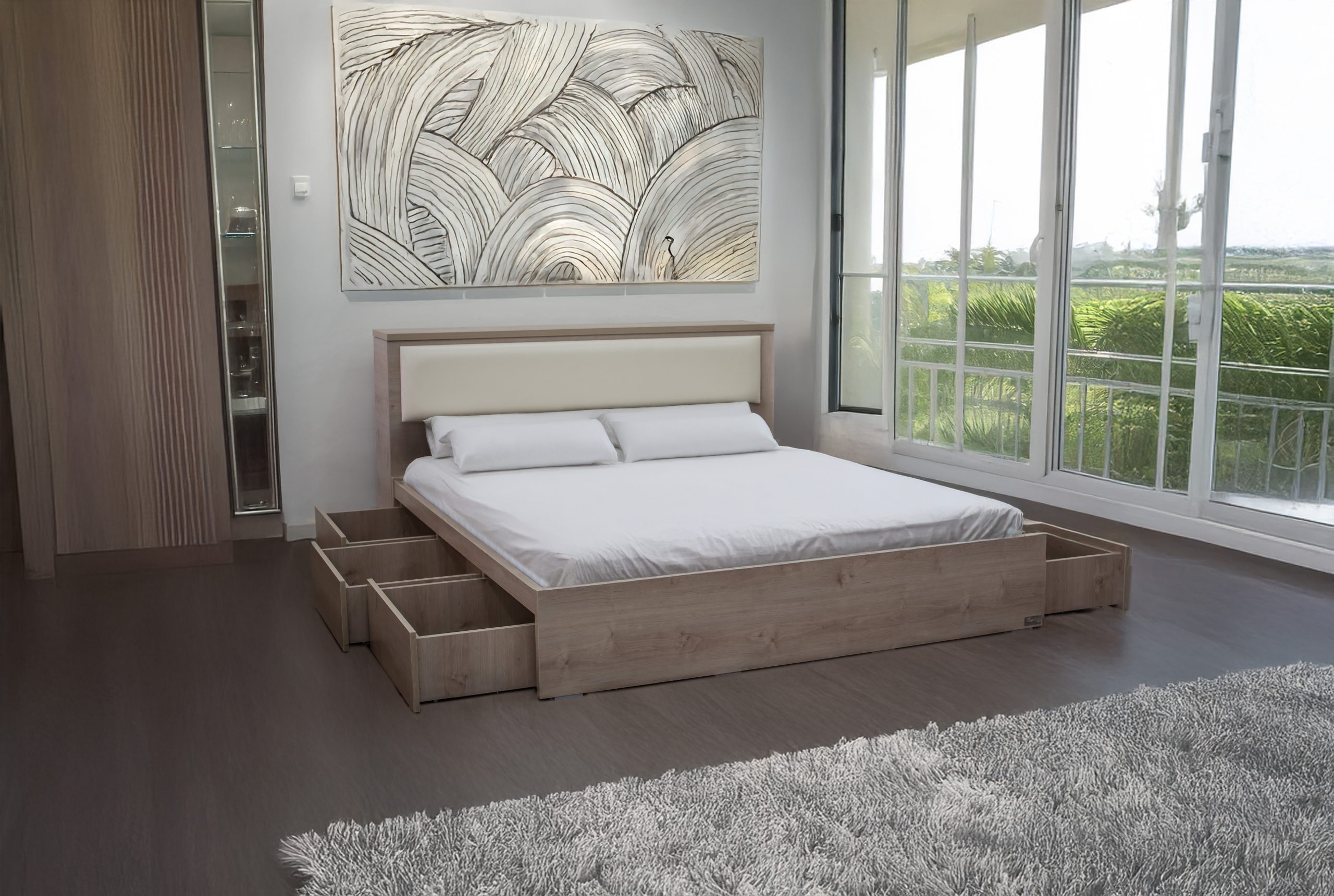 מיטה זוגית עם סט מגירות נשלפות מהצד לבחירתכם : כמות המגירות 2 או 3 מצדי המיטה