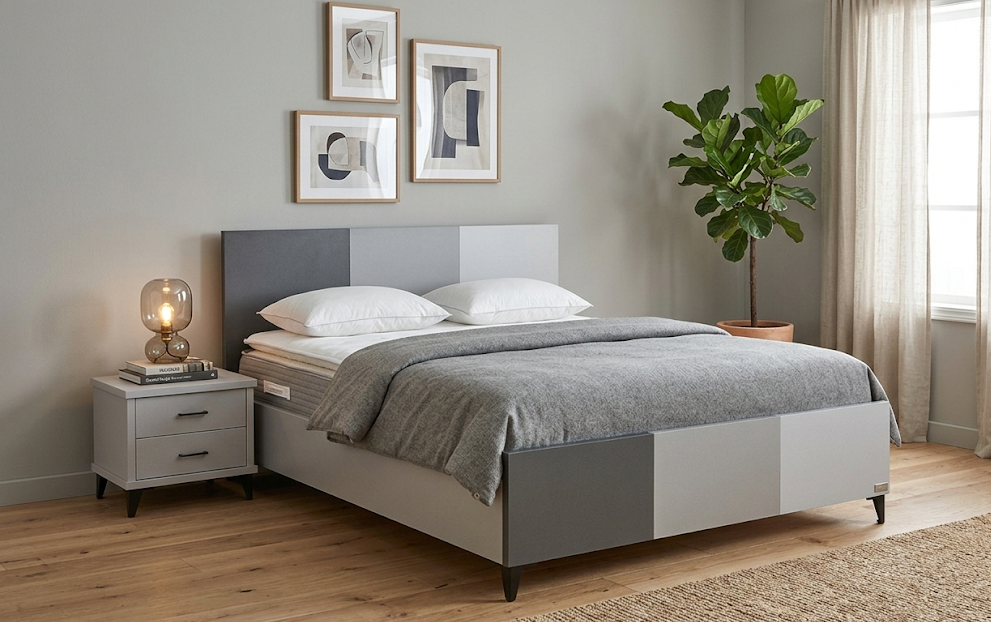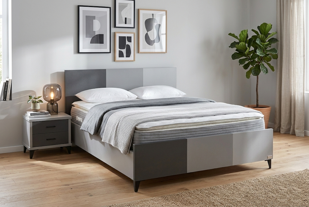 מסגרת המיטה עשויה מלמין 28 ממ שילוב של גווני אפור