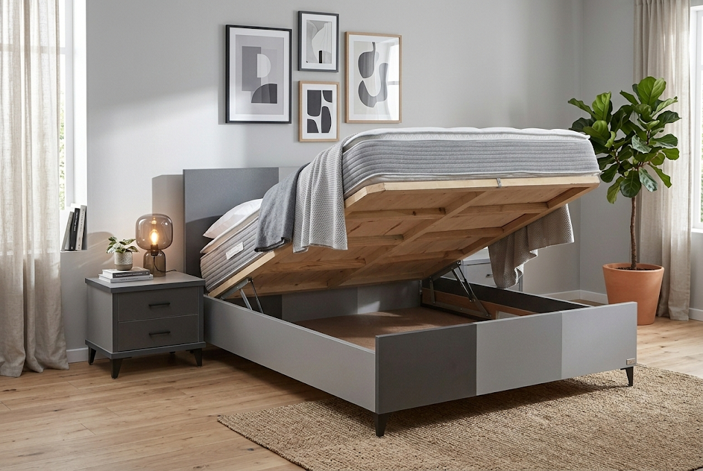 המיטה כוללת ארגז מצעים נפתח לאחסון