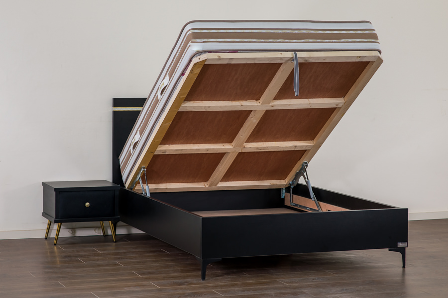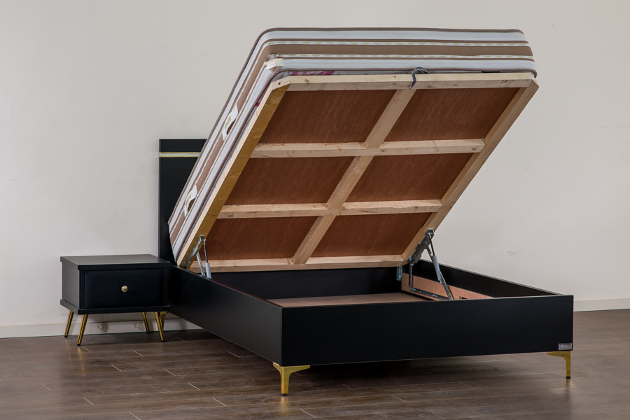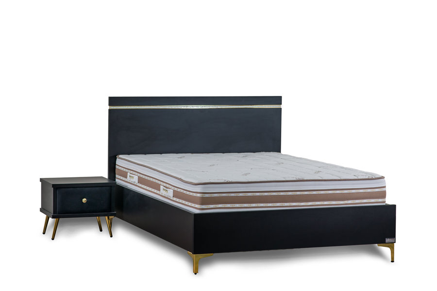 המיטה מוגבהת עם רגל ניקל 13 ס”מ . שחור/ ניקל / זהב
