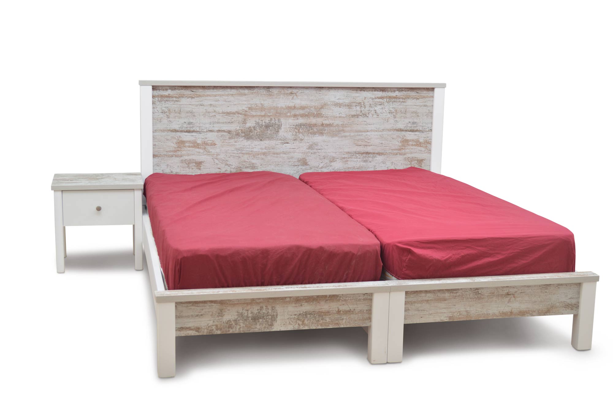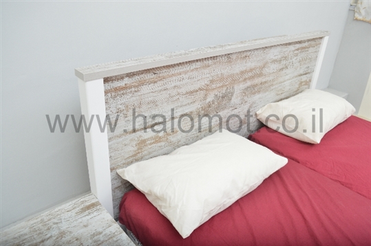 בסיסי המיטות שתומכים במזרנים עשויים רוקות עץ אורן ועליהן פלטה אחידה של דיקט