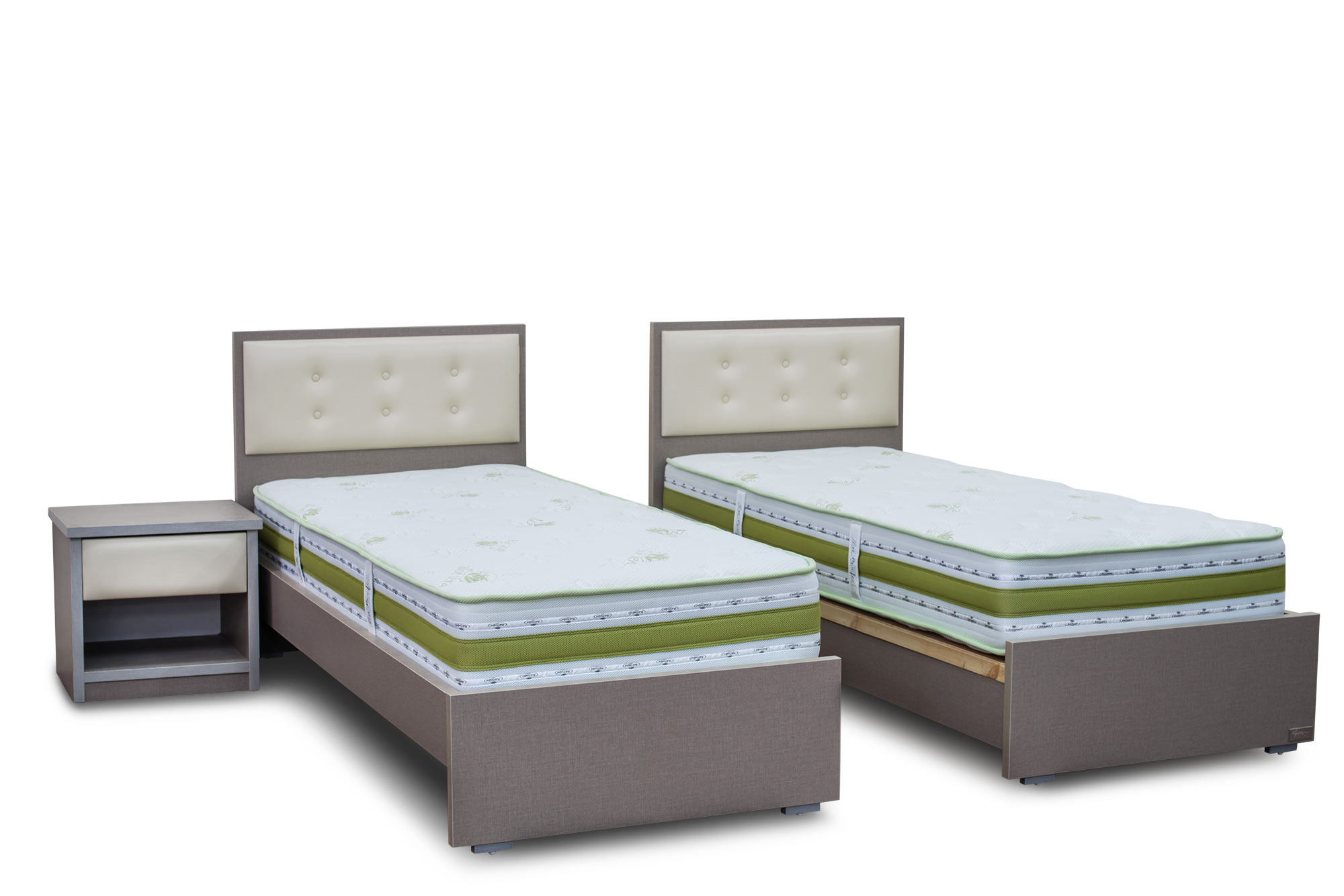 המחיר לזוג מיטות, בשלל גוונים, בשילוב כרית מרופדת בראש המיטה.