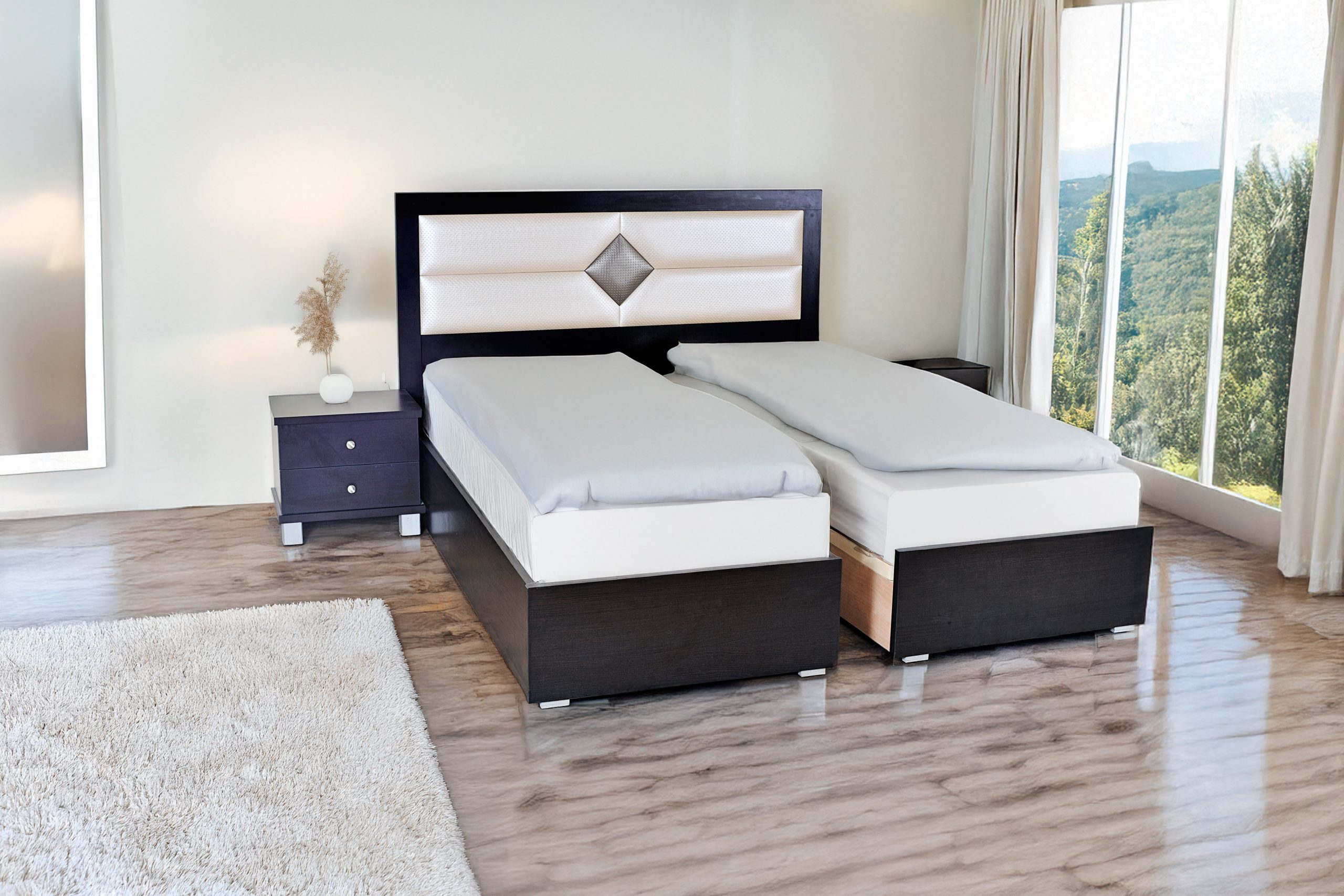 זוג מיטות נפרדות דגם ספיר עם ראש מיטה מרופד דוגמא יהלום.