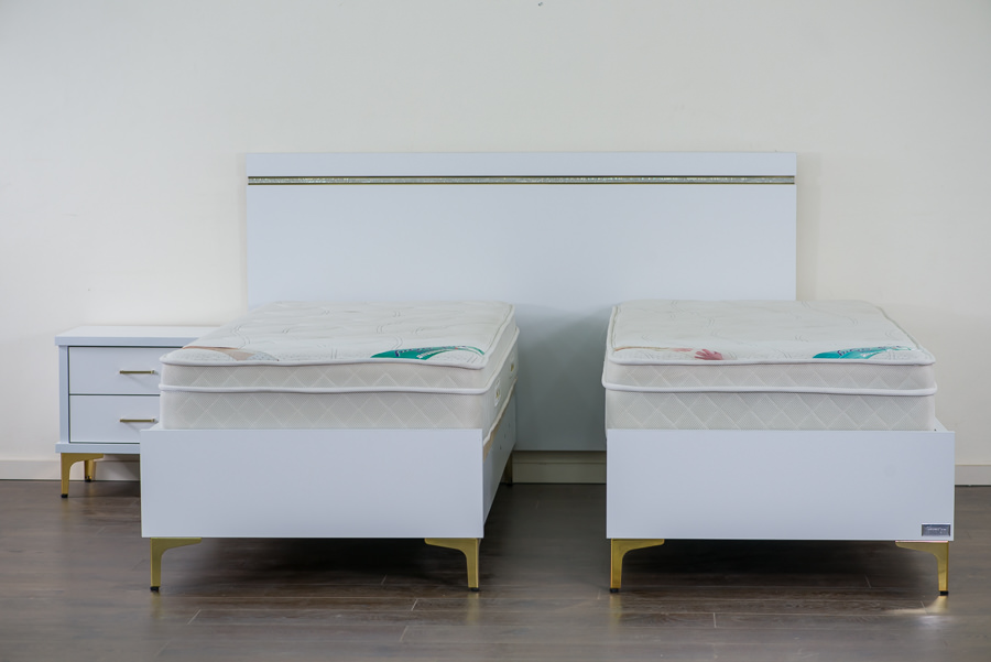 המחיר מתייחס לזוג מיטות ללא מזרנים וללא שידה.