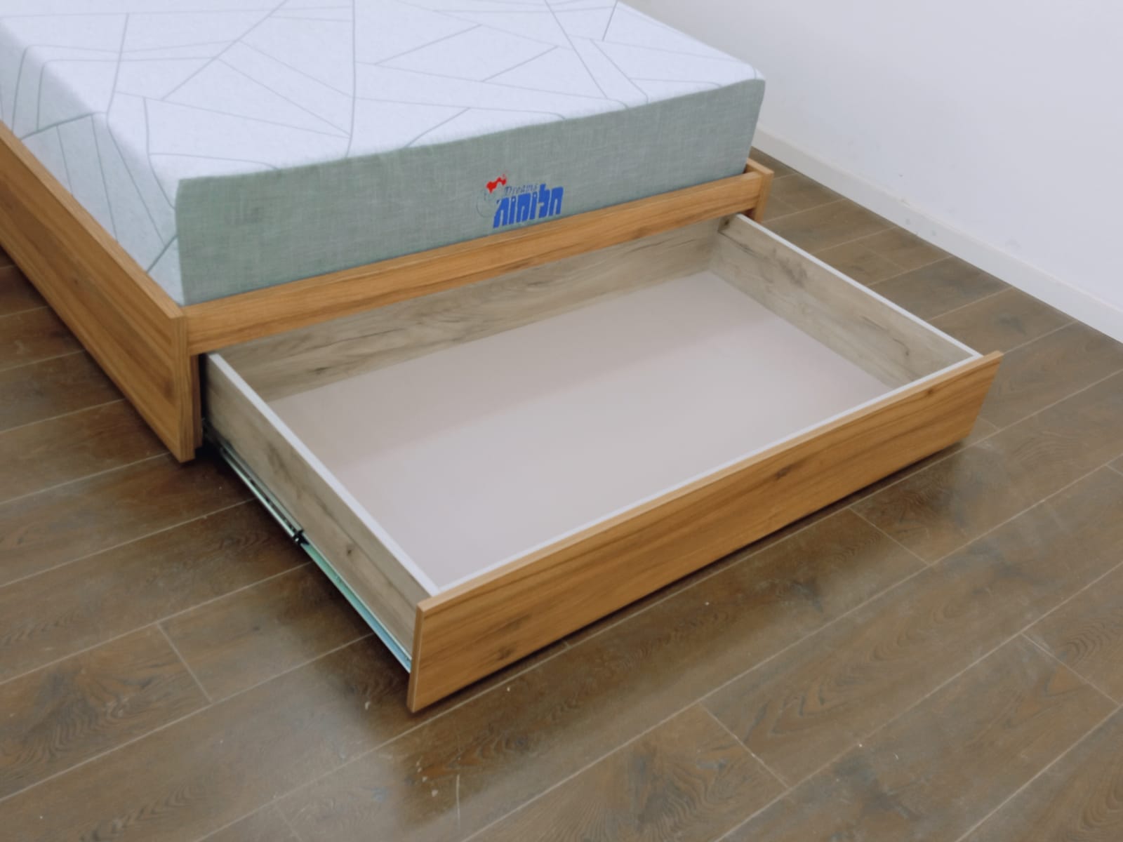שליפה נוחה וקלה של המגירה מחזית המיטה לאחסון נוח