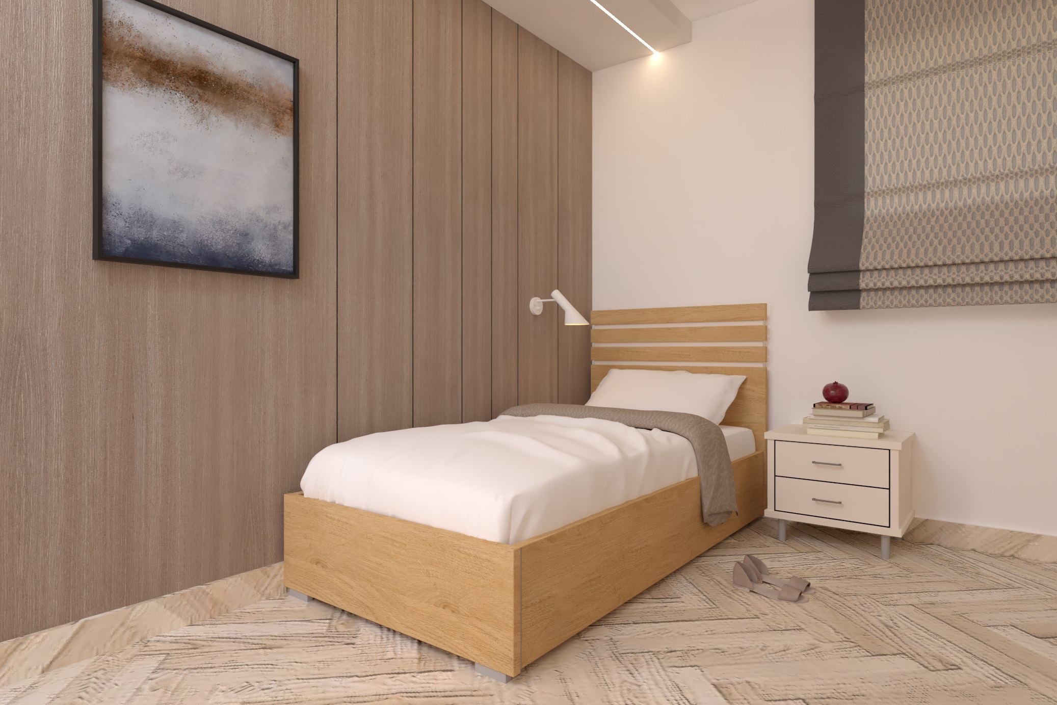דוגמא עדינה ,בראש המיטה משולבים פסים שקועים לגימור מושלם.