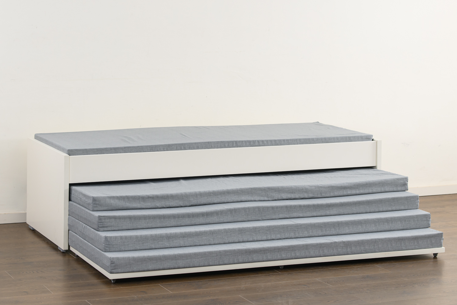 מיטת נוער כולל מזרנים , בחלק התחתון של המיטה מאוחסנים 4 או 5 או 6 מזרנים נוספים.