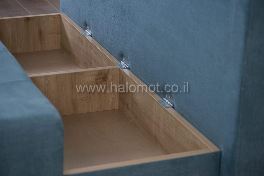 מתחת למיטה התחתונה יש ארגז מצעים שניתן לגשת אליו ע”י משיכת המיטה הקדמית.