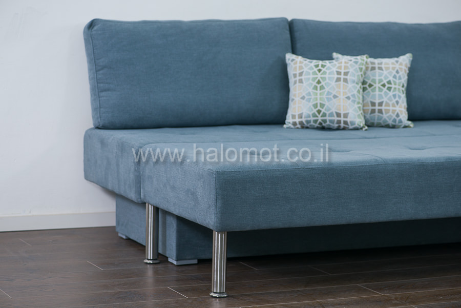 הספה נפתחת למיטה בגודל כפול, 155 ס”מ, ע”י הורדת גב הספה.