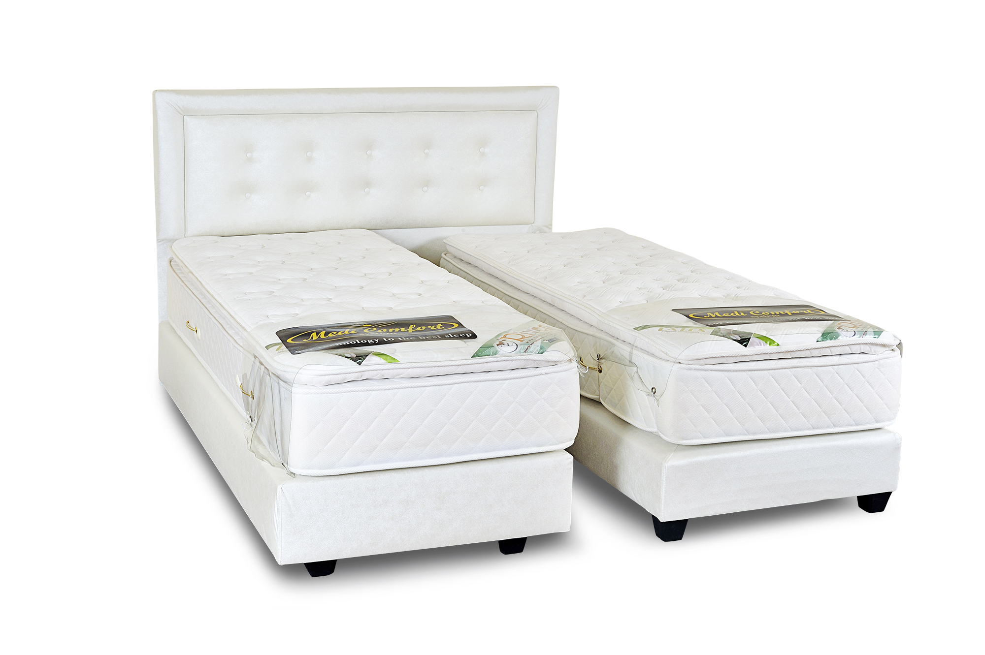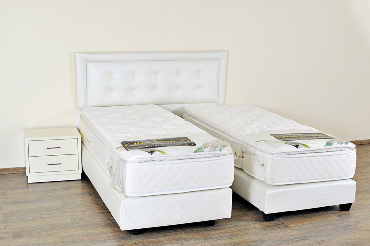 זוג מיטות בהפרדה יהודית, עם ראש מיטה מרופד.