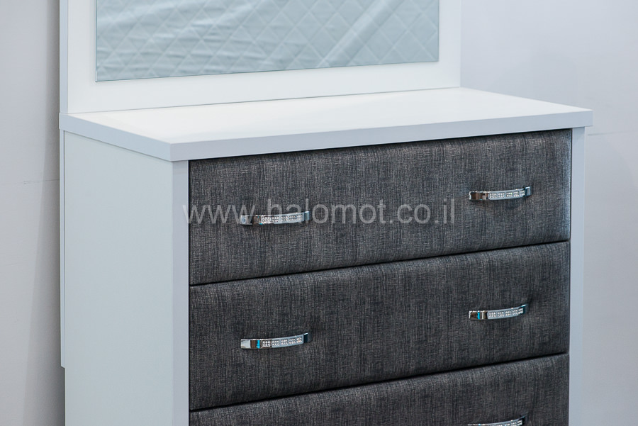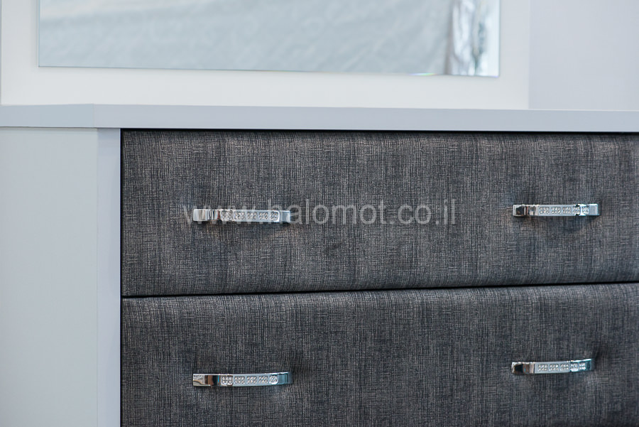 חזיתות המגירה מרופדות. ניתן לקבל חזיתות ללא ריפוד בקישור: קומודה 4 מגירות