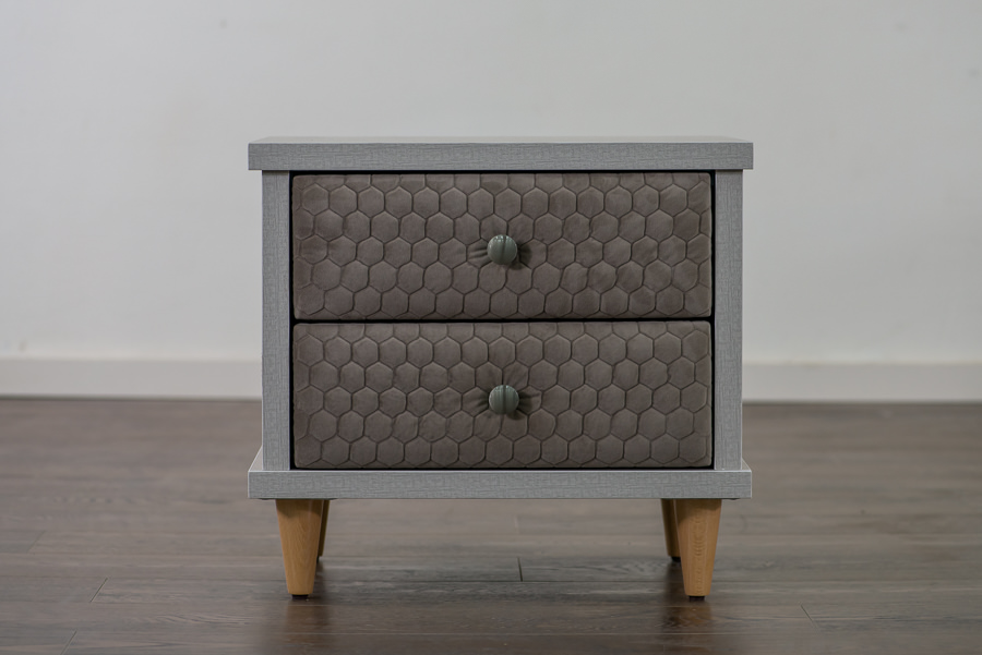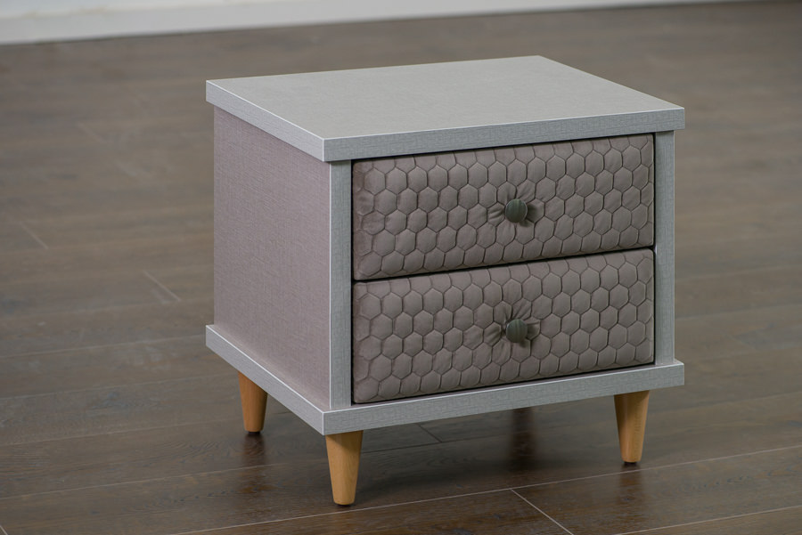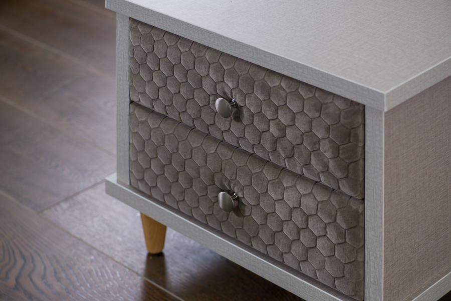 חזיתות המגירה מרופדת בבד או דמוי עור לפי בחירה