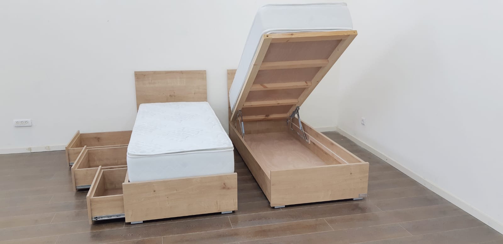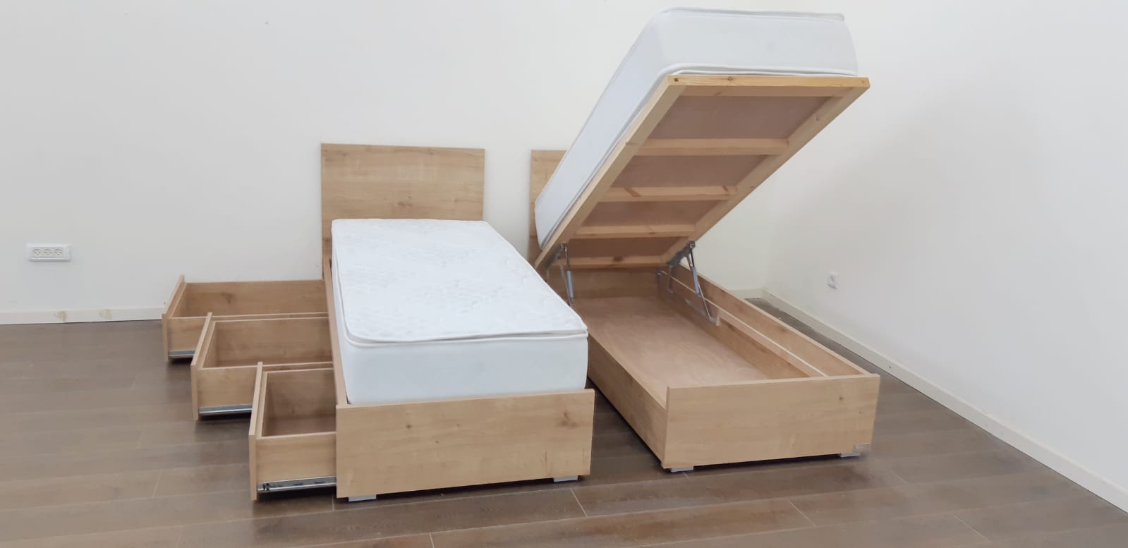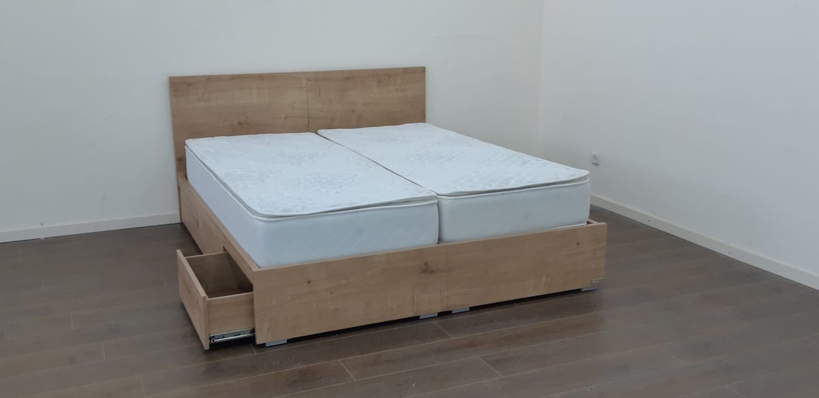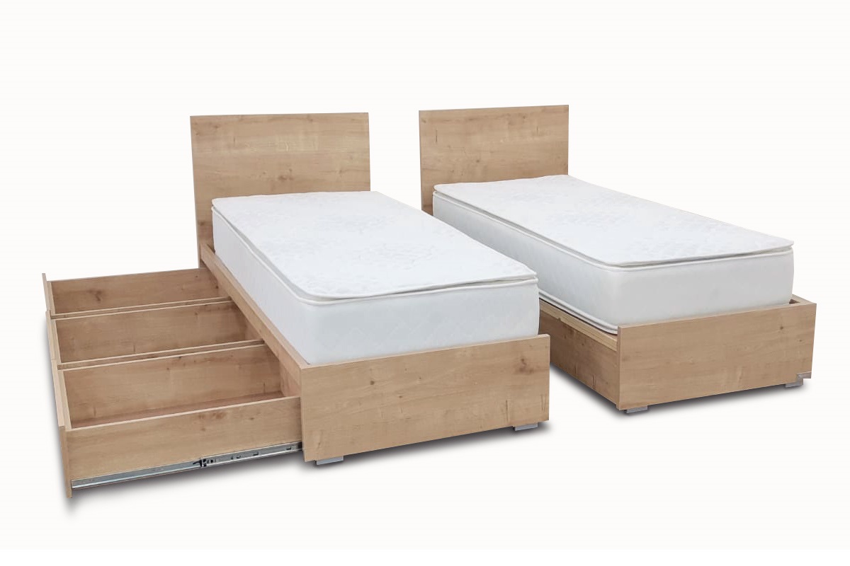 מיטה עם ראשים נפרדים צד אחד ארגז מתרומם צד אחד מגירות – דגם ספיר