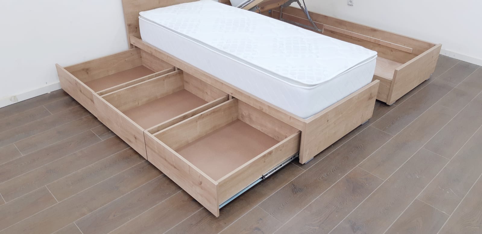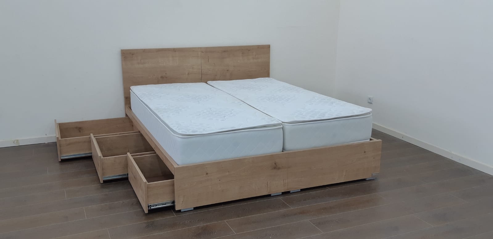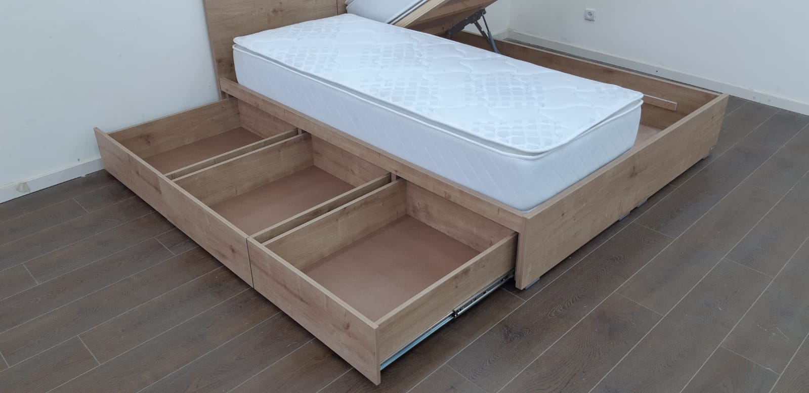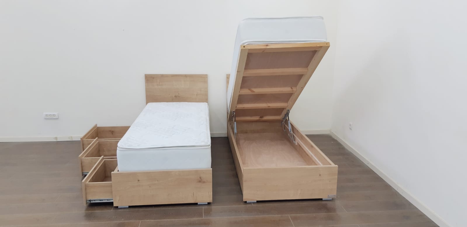 מיטה עם ראשים נפרדים צד אחד ארגז מתרומם צד אחד מגירות – דגם ספיר