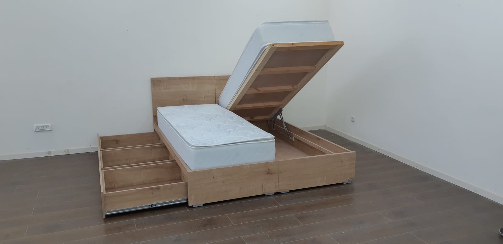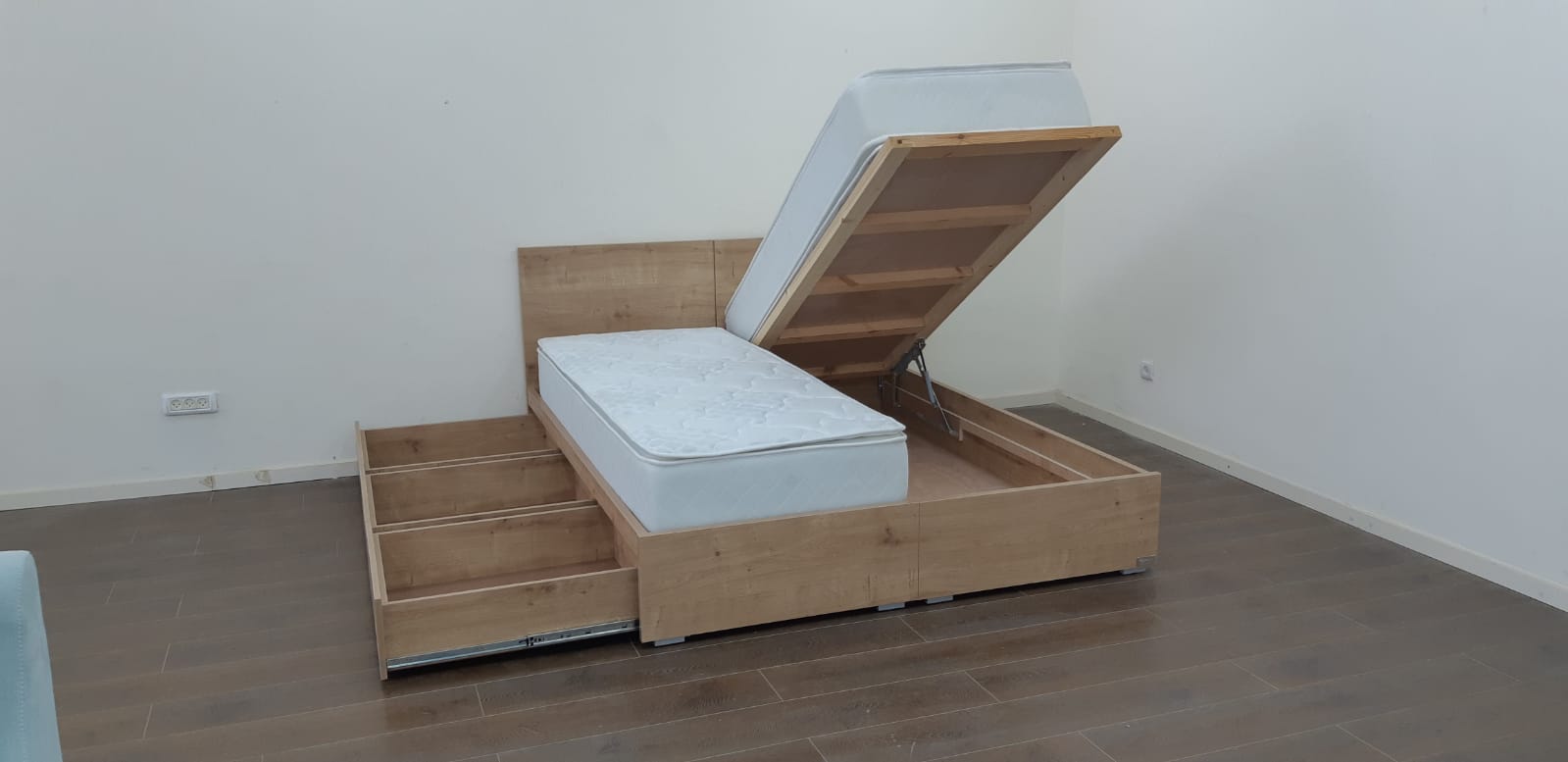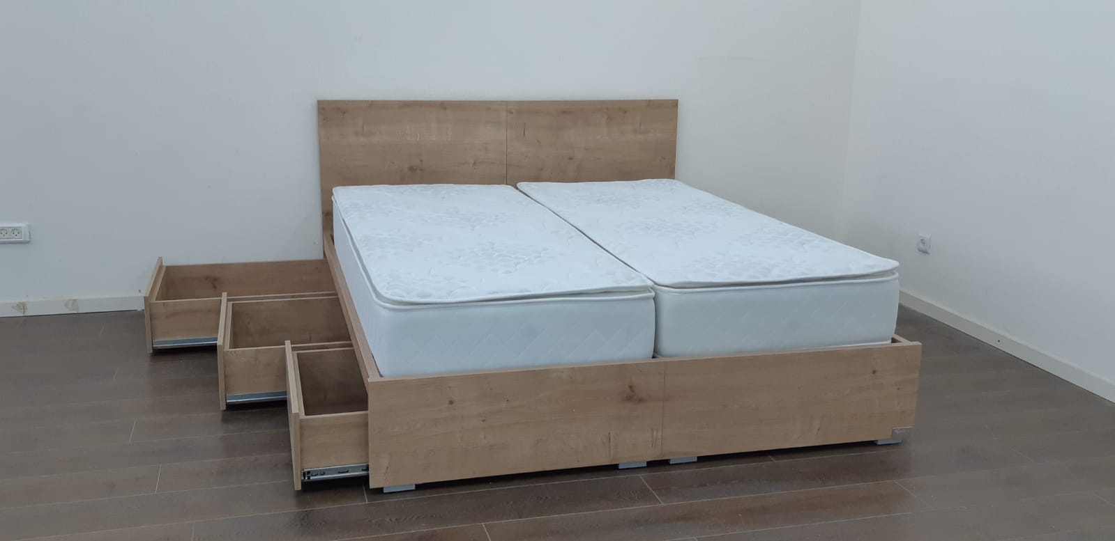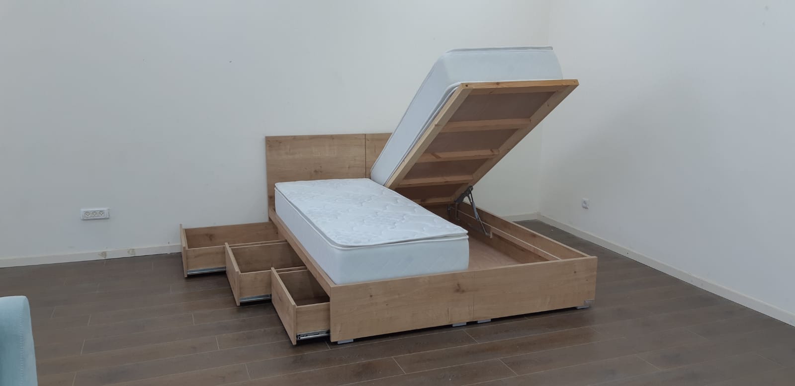 מיטה עם ראשים נפרדים צד אחד ארגז מתרומם צד אחד מגירות – דגם ספיר