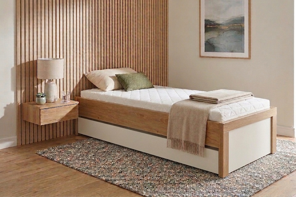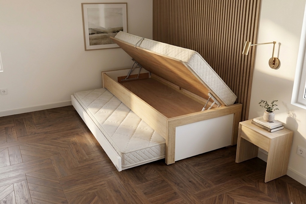 מיטת נוער נפתחת היי רייז עם ארגז מצעים ומזרנים נשלפים.