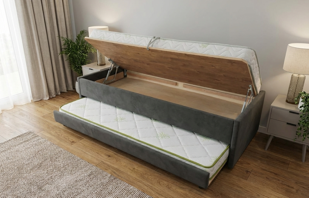 במיטות נוער נפתחות עם ארגז מצעים של חלומות כמה יתרונות חשובים : מזרנים נוחים ונשלפים – מקלים על החלפת מצעים וגישה נוחה לארגז מצעים