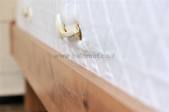 מיטה איכותית; בסיס המיטה עשוי קורות של עץ אורן מלא ועליו פלטה אחידה של דיקט לתמיכה נכונה במזרן.