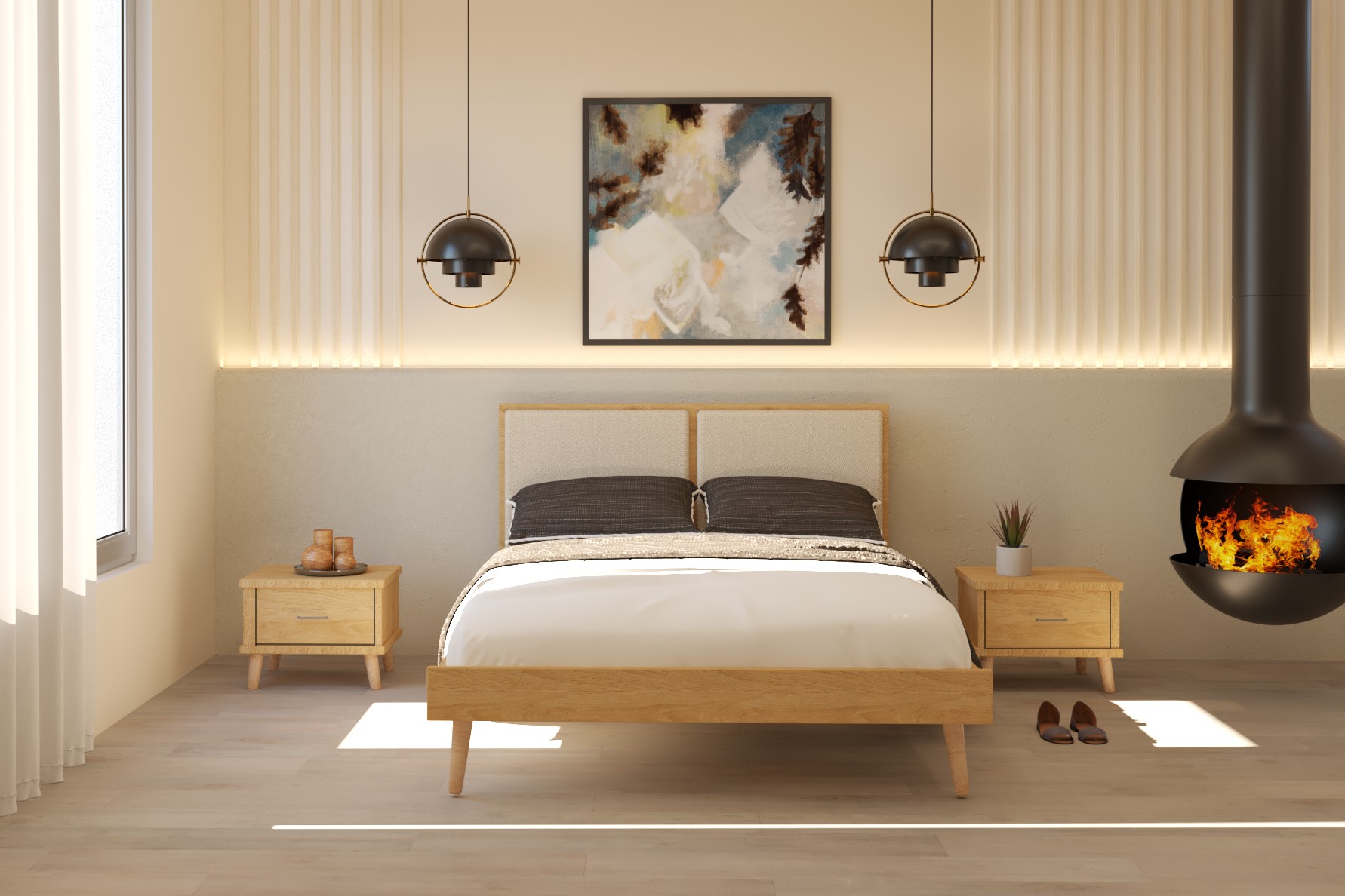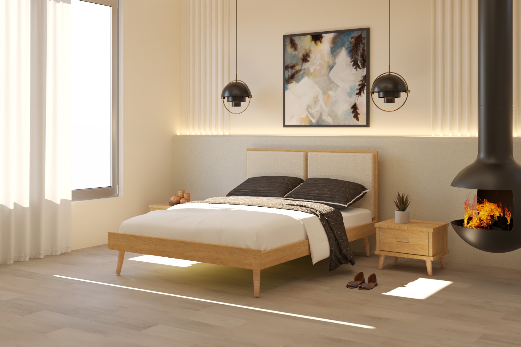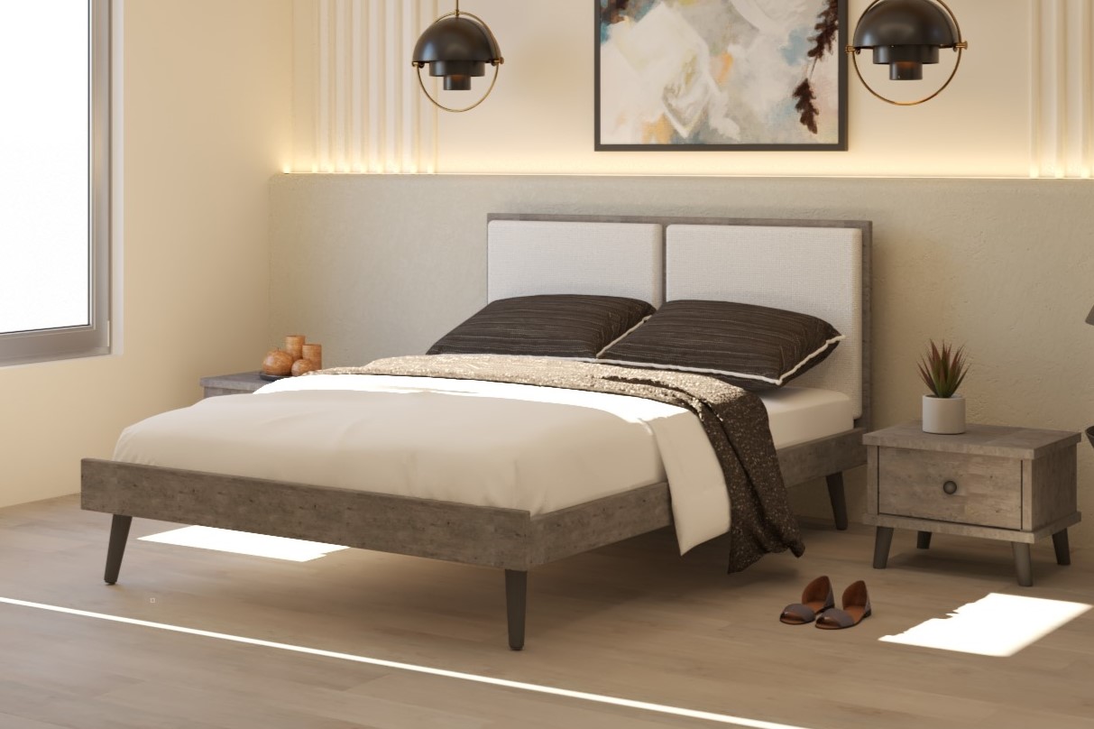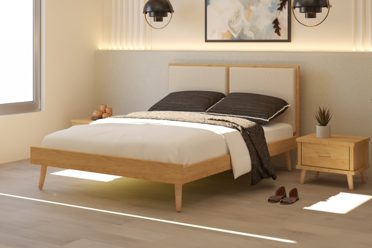 שילוב מיוחד של מסגרת בגווני עץ וראש מרופד