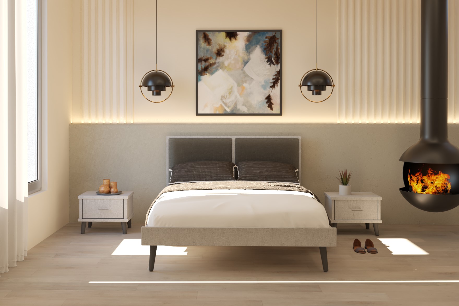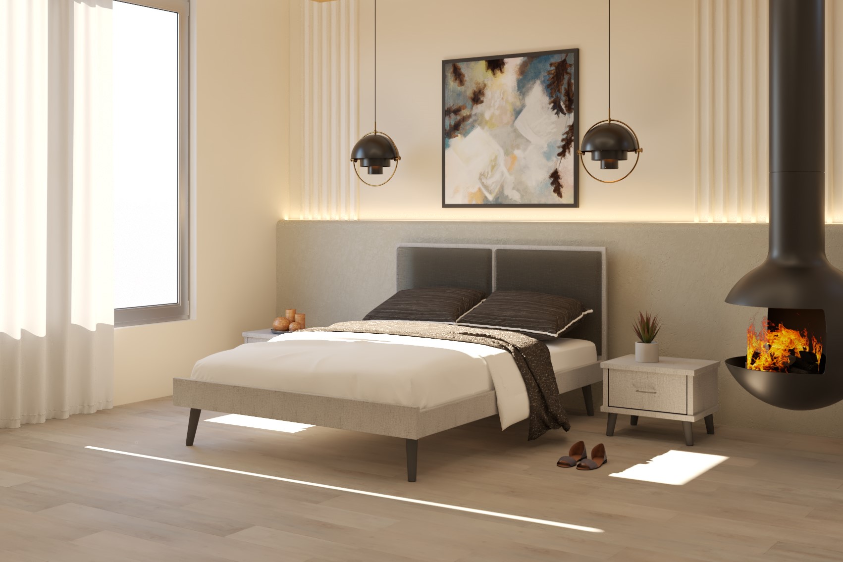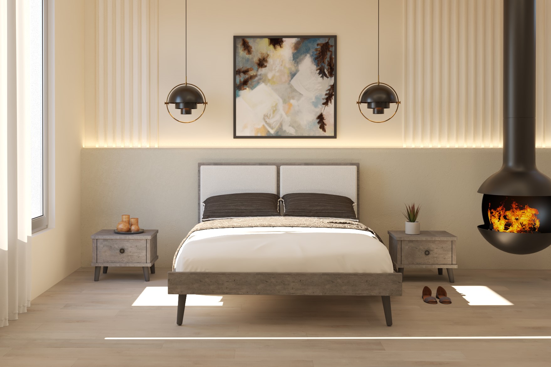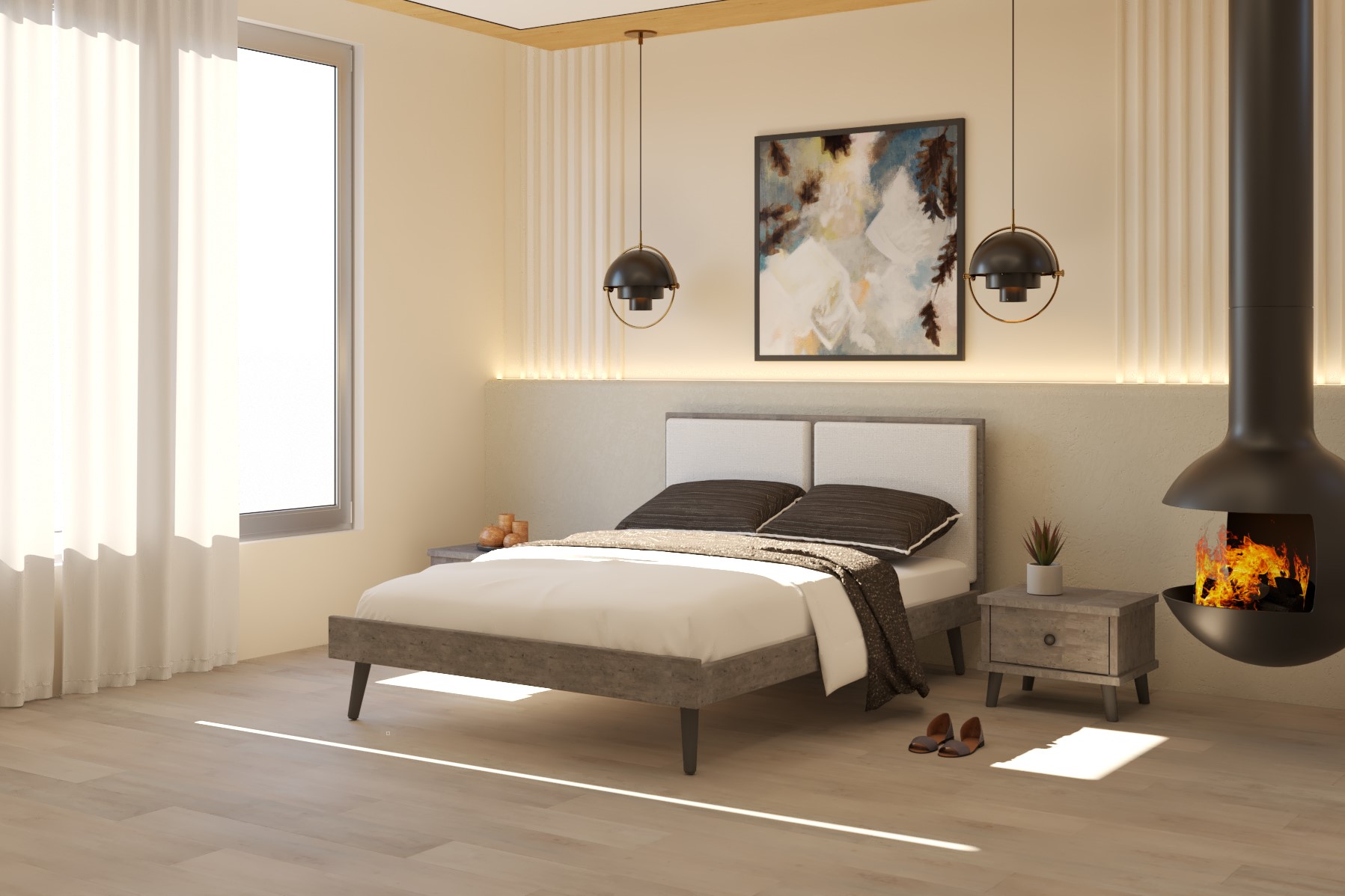 שילוב מיוחד של מסגרת בגווני עץ וראש מרופד