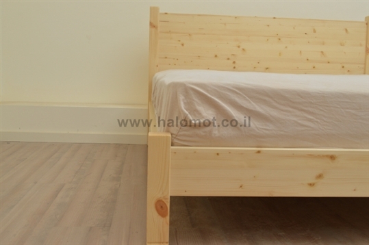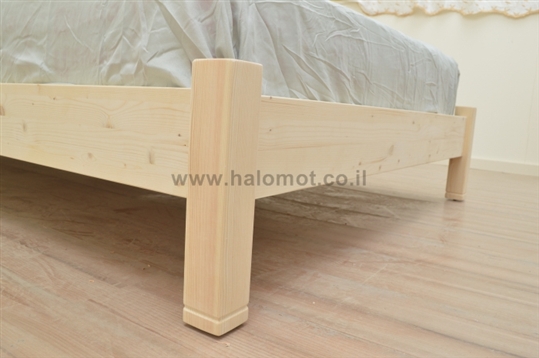 בסיס המיטה עשוי קורות עץ אורן מלא ועליהן פלטה אחידה של דיקט לתמיכה נכונה במזרן