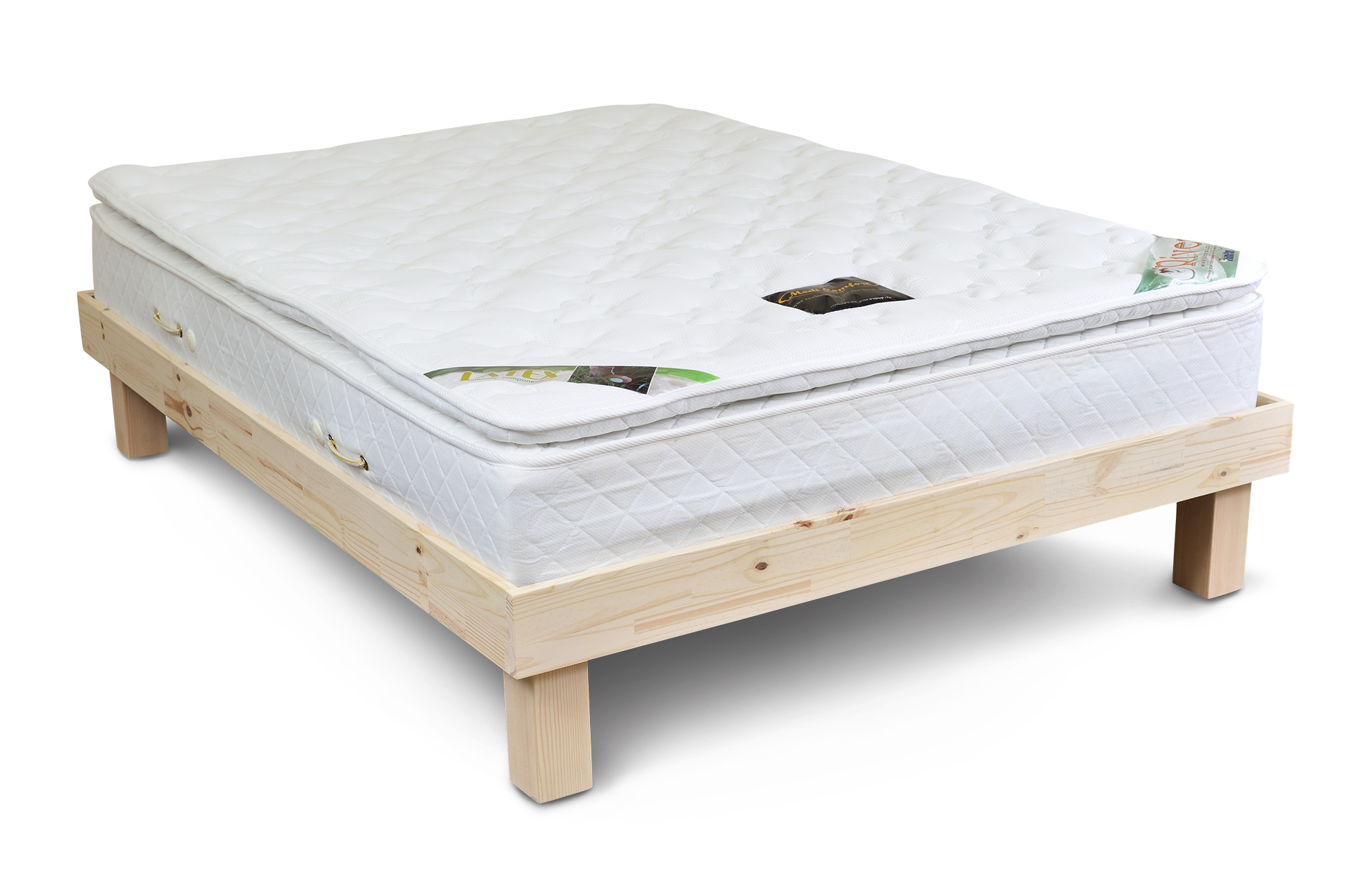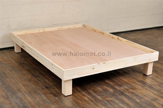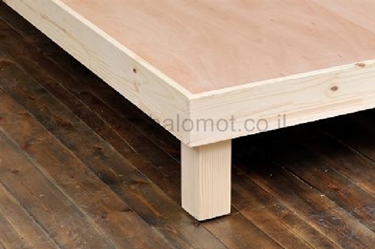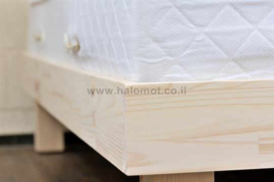 בסיס המיטה עשוי קורות עץ אורן מלא ועליו פלטה אחת של דיקט לתמיכה נכונה במזרן.