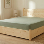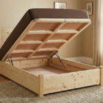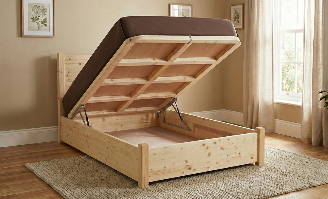 מיטה זוגית מעץ אורן מלא עם ארגז מצעים לאחסון