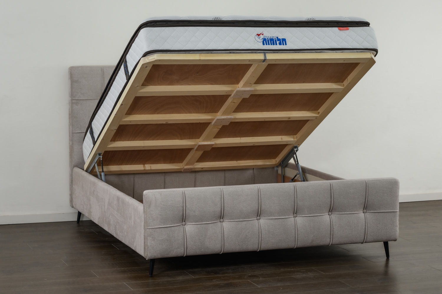 גוף המיטה בנוי מסנדוויץ ומרופד בבד או דמוי עור במגוון צבעים וטקסטורות.