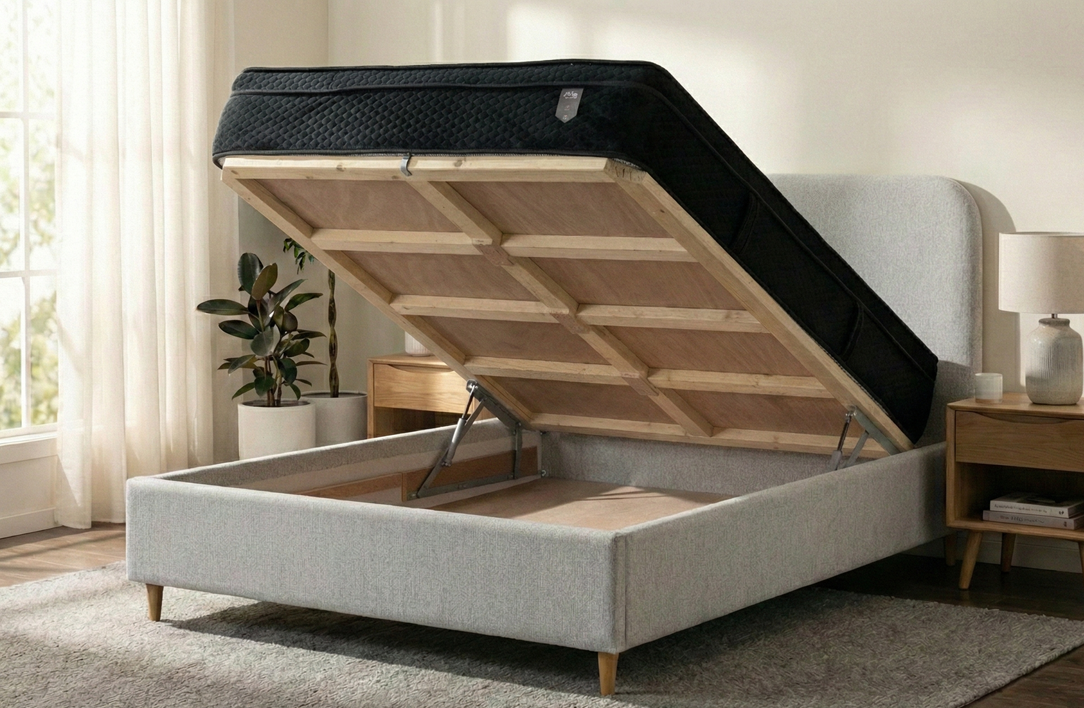גוף המיטה מרופד בבד מהודר לבחירתכם – מגוון צבעים וטקסטורות.