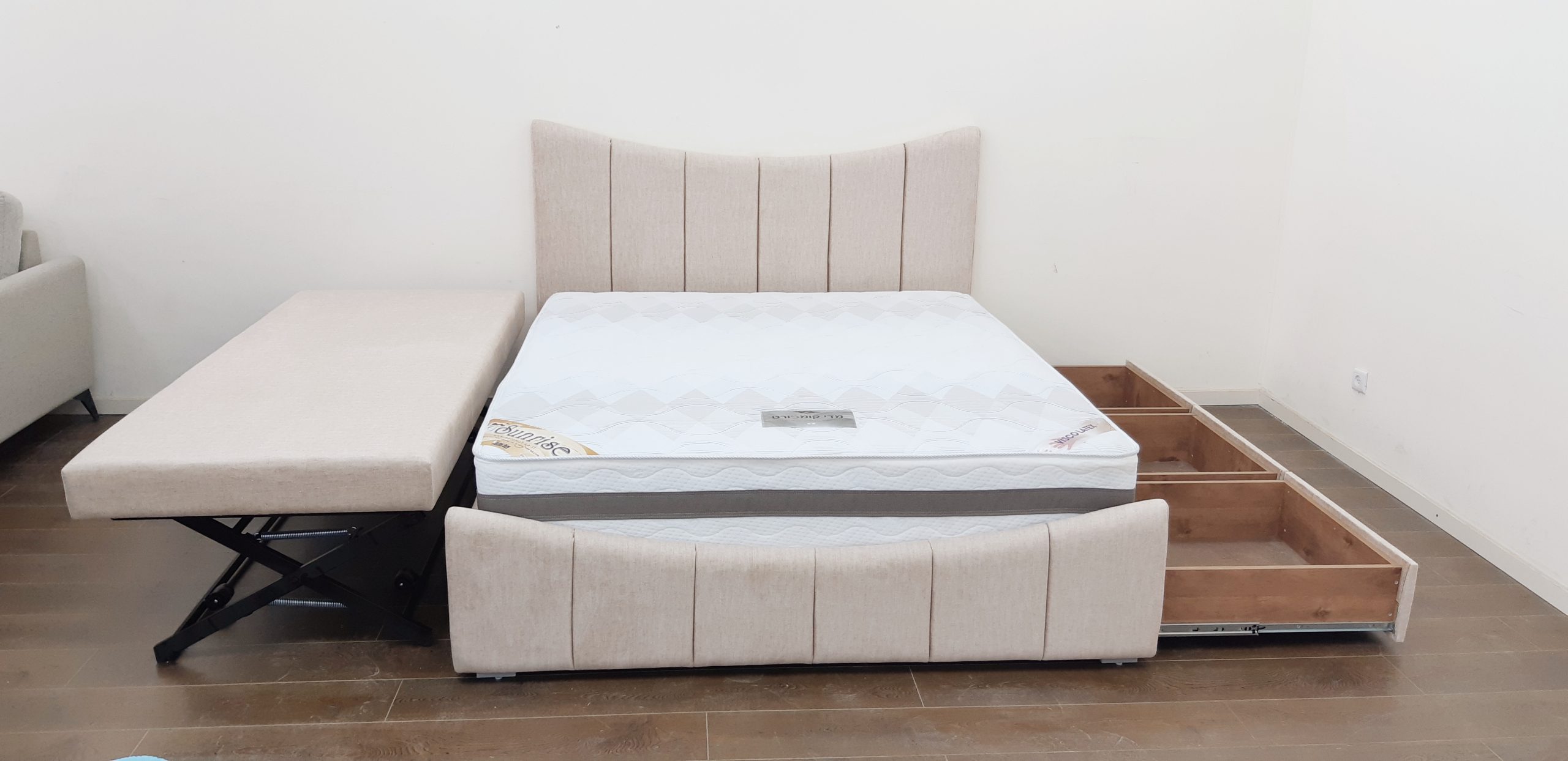 וגם מיטה נשלפת לאירוח , מתרוממת ע”י מנגנון “היי רייז”