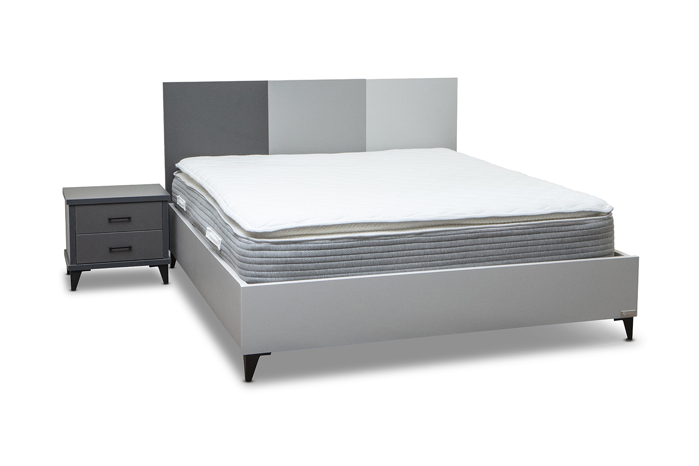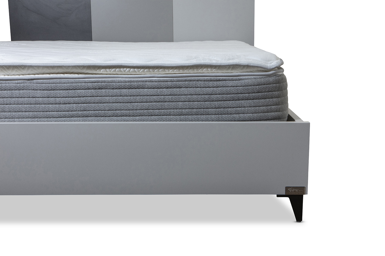 מסגרת המיטה עשויה מלמין 28 ממ שילוב של גווני אפור