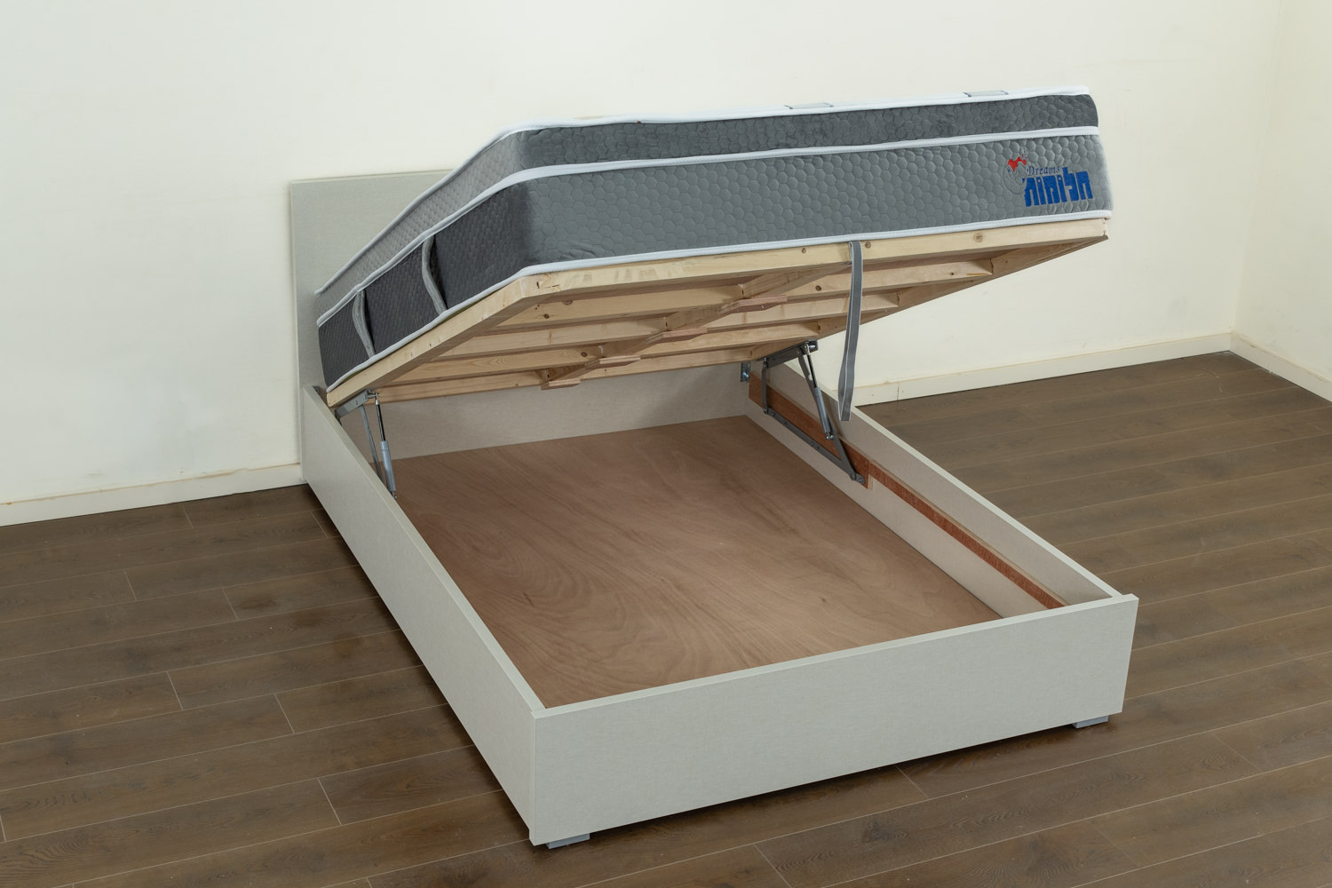 מיטה זוגית עם ארגז מצעים שמפניה פלוס