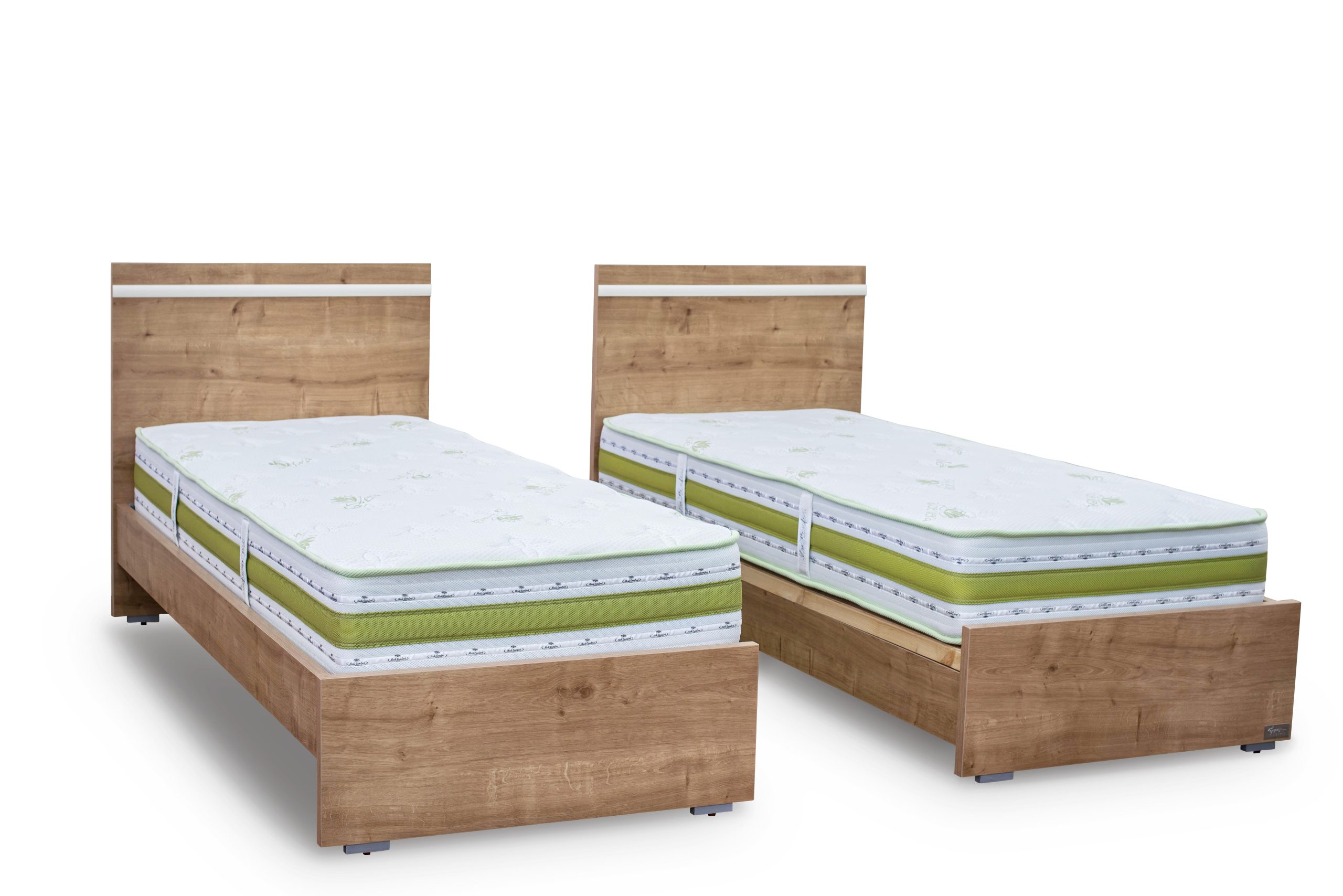 מסגרת המיטה מלמין בעובי 28 מ’מ , תחתית המיטות קורות עץ אורן ועליהן פלטה אחידה של דיקט לתמיכה חזקה במזרן וליציבות.