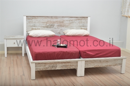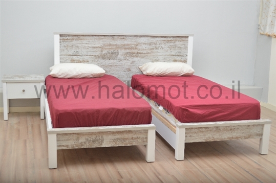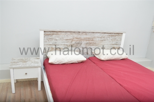 בסיסי המיטות שתומכים במזרנים עשויים רוקות עץ אורן ועליהן פלטה אחידה של דיקט