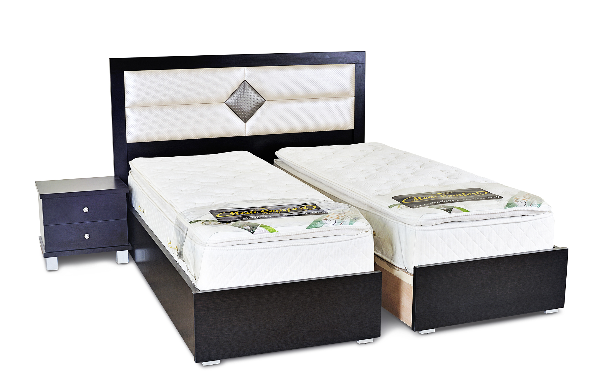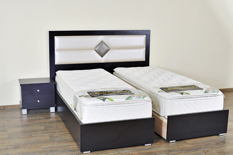 זוג מיטות נפרדות דגם ספיר עם ראש מיטה מרופד דוגמא יהלום.