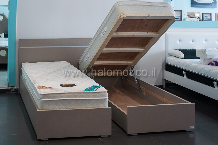 מיטה יהודית עם ארגזי מצעים וראש מיטה – דגם ספיר ראש סנדי