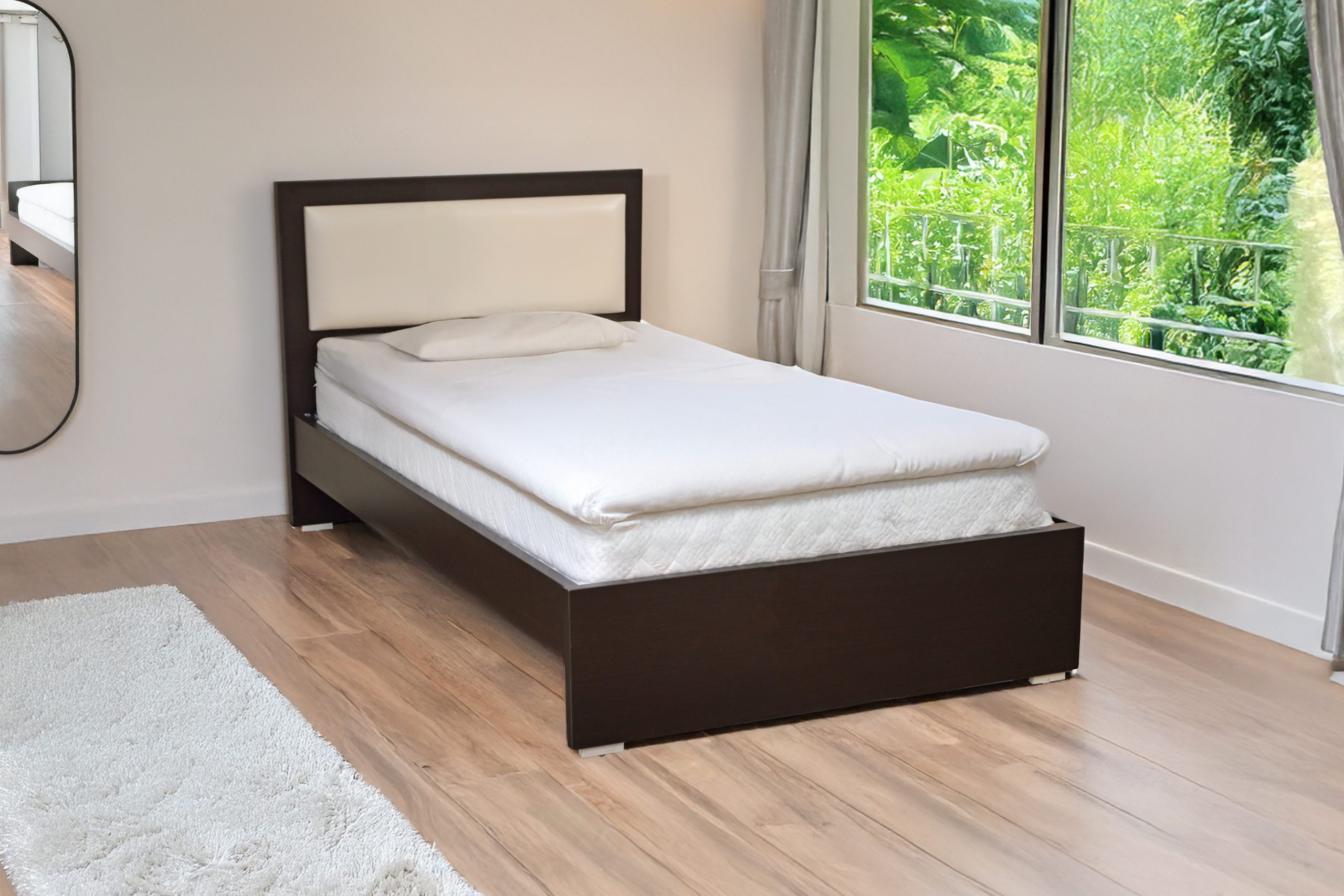 מיטה חזקה ויציבה , עם שילוב של כרית ריפוד בראש המיטה.