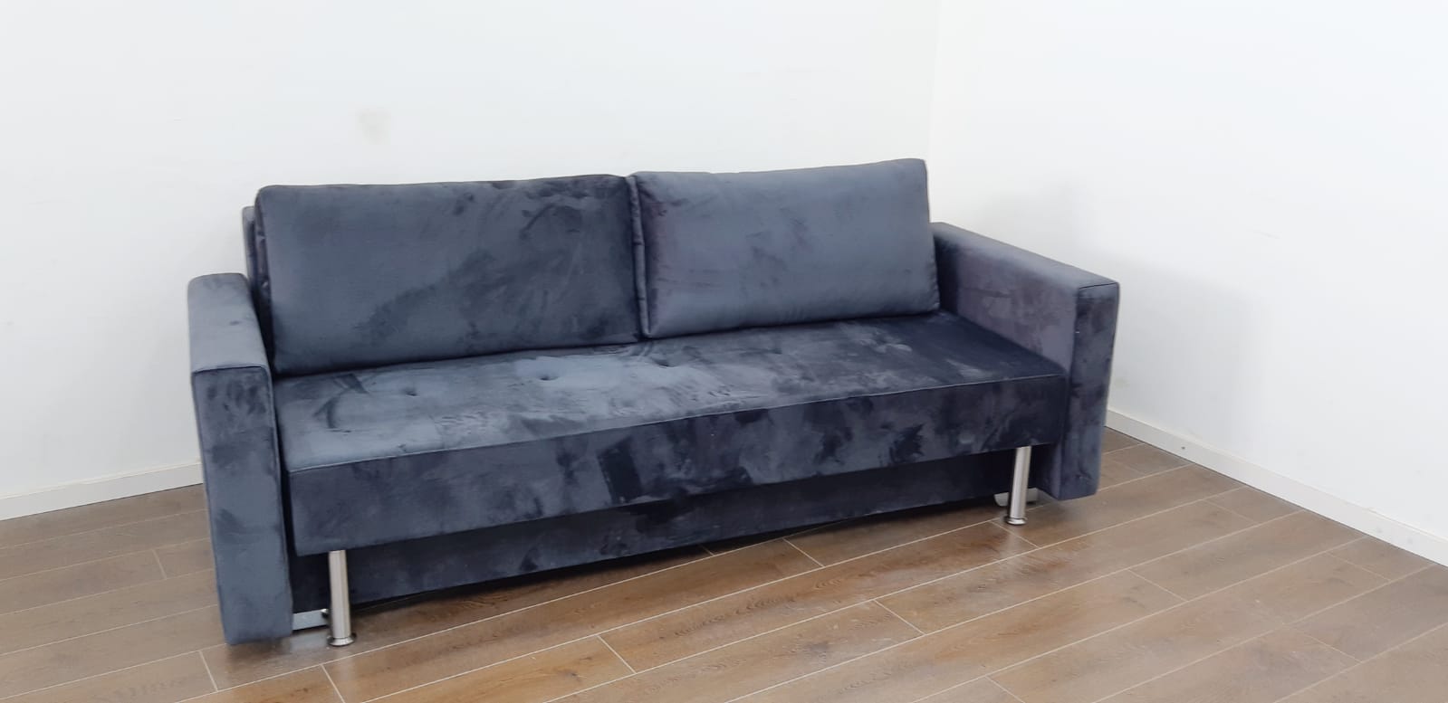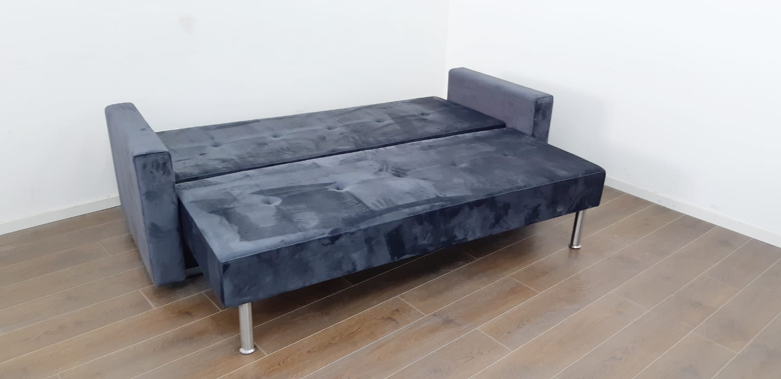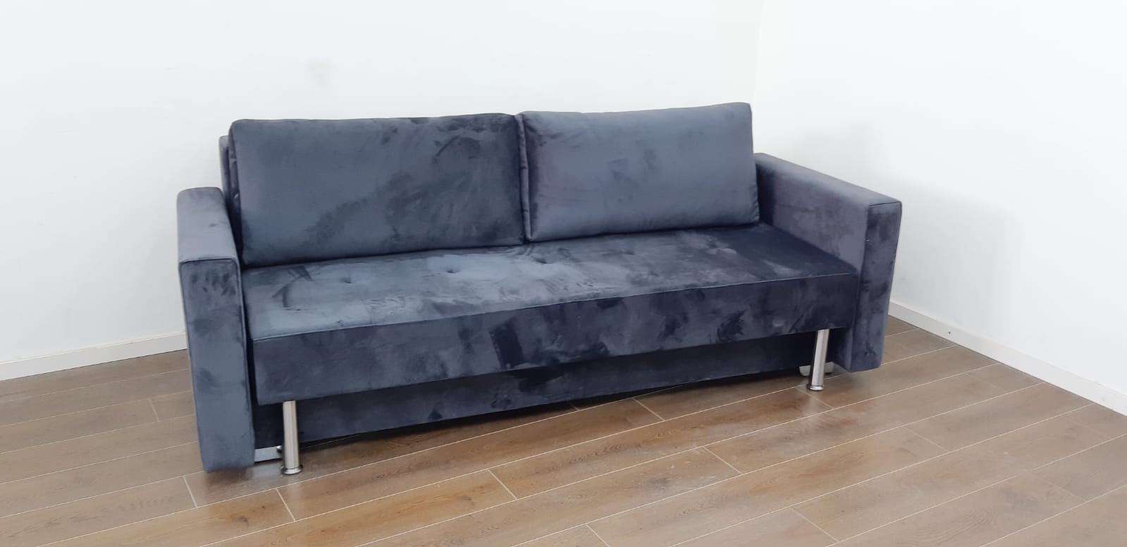 ספה הנפתחת למיטה זוגית עם ארגז מצעים מובנה.