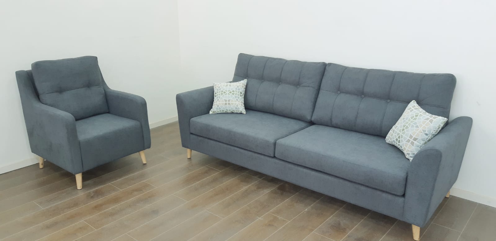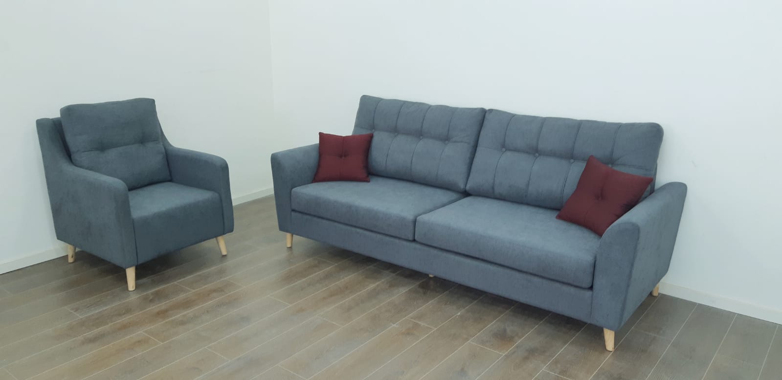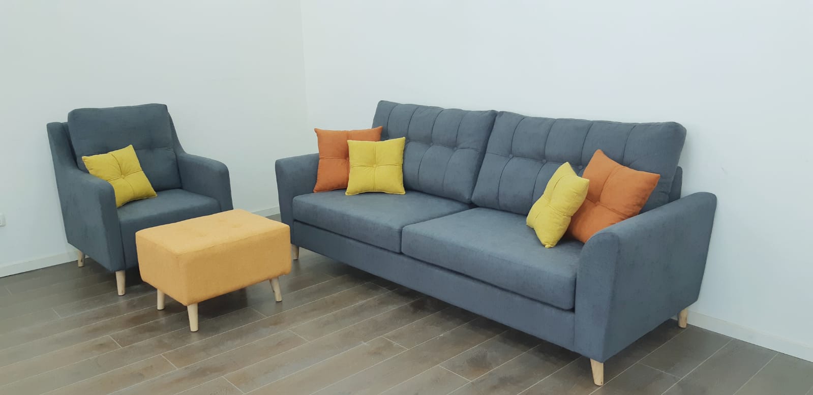 ספה תלת מושבית לסלון דגם תילתן רגל עץ אורן