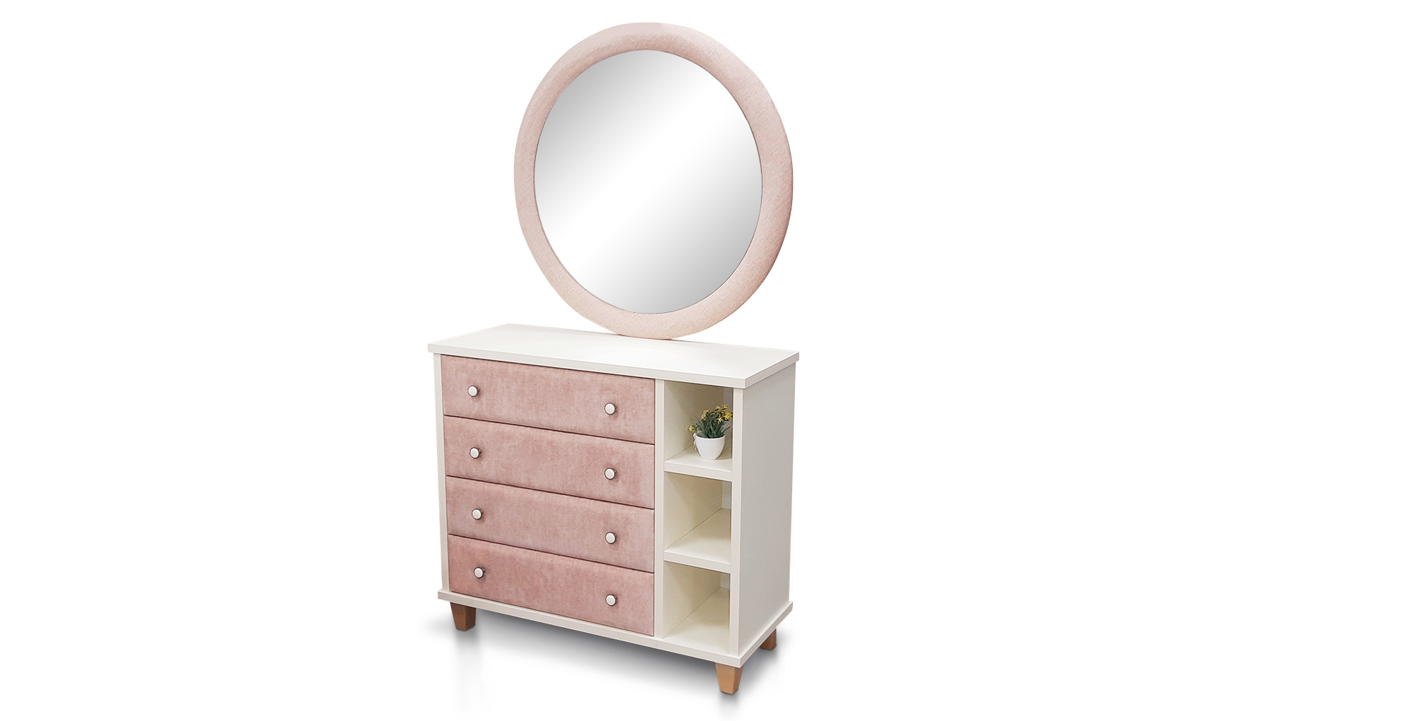 קומודה 4 מגירות, + 4 מדפים בצד ימין או שמאל , עשויה מלמין יצוק במגוון צבעים.