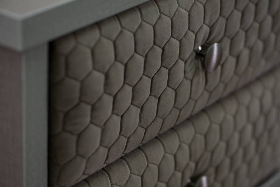 חזיתות המגירה מרופדת בבד או דמוי עור לפי בחירה